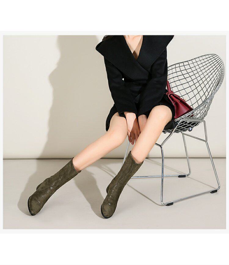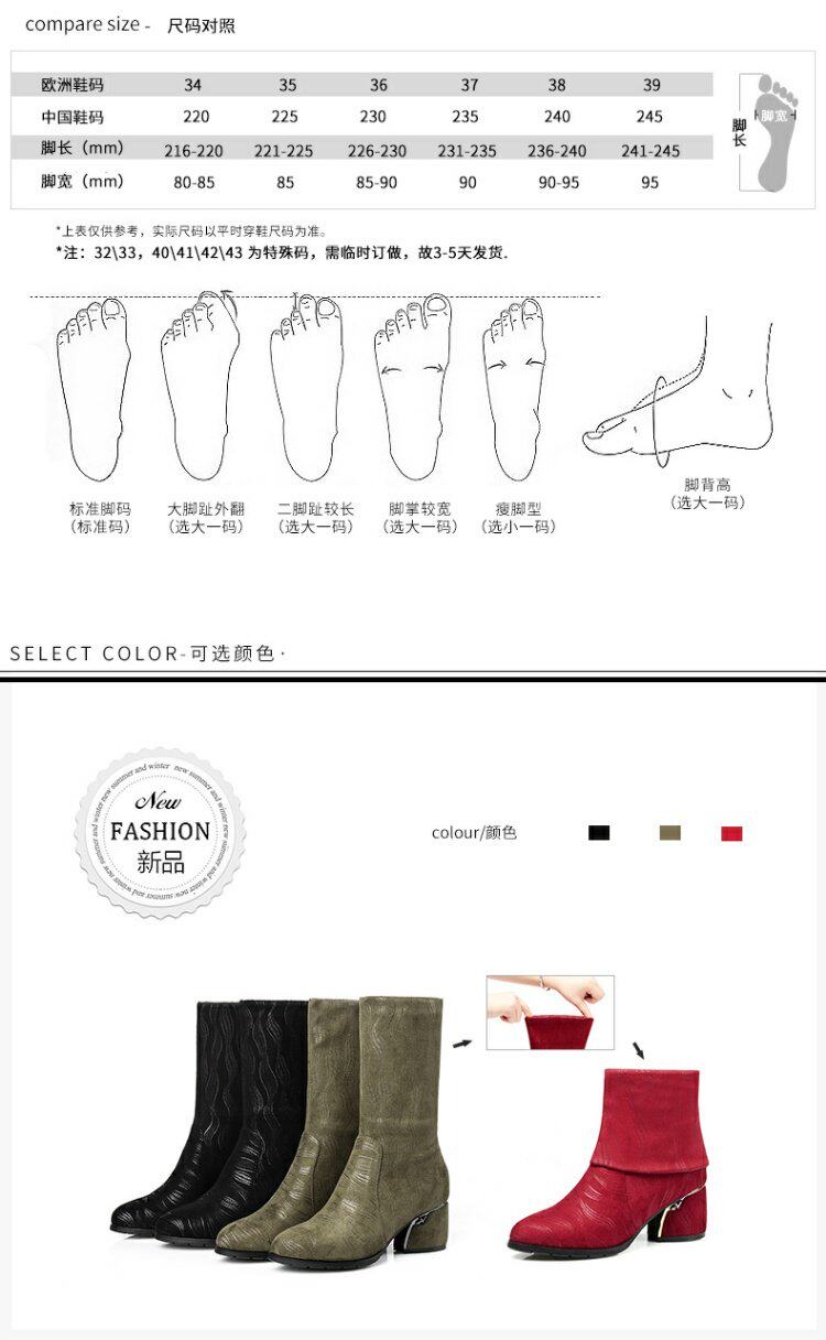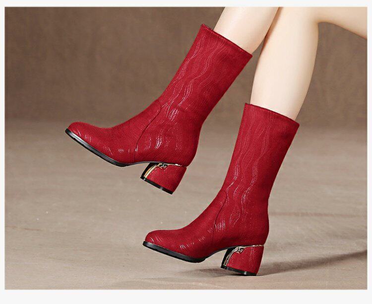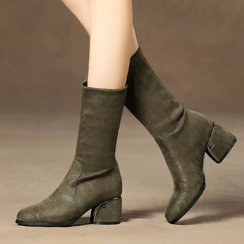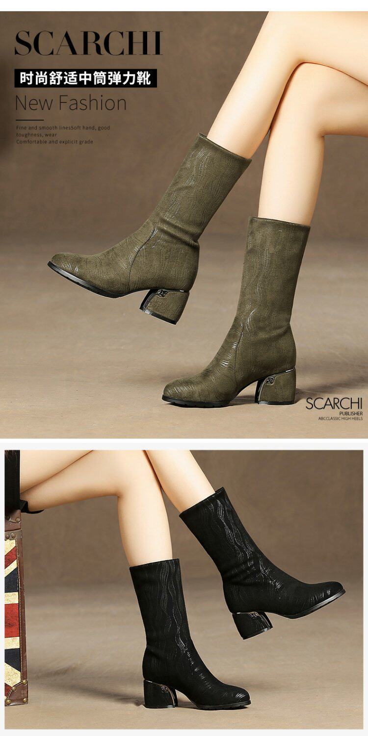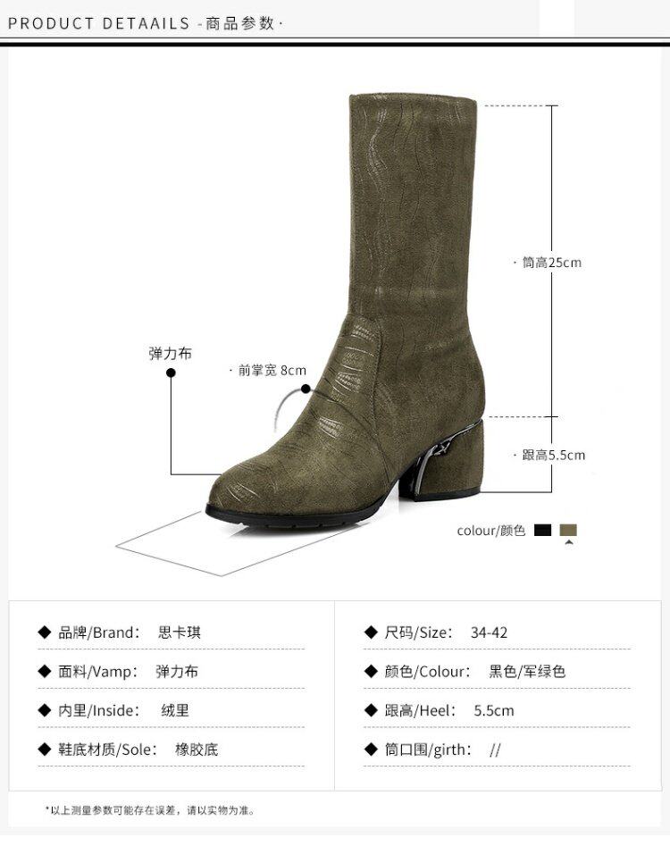Эластичные демисезонные сапоги на высоком каблуке, вместительная и большая обувь, средней длины, большой размер