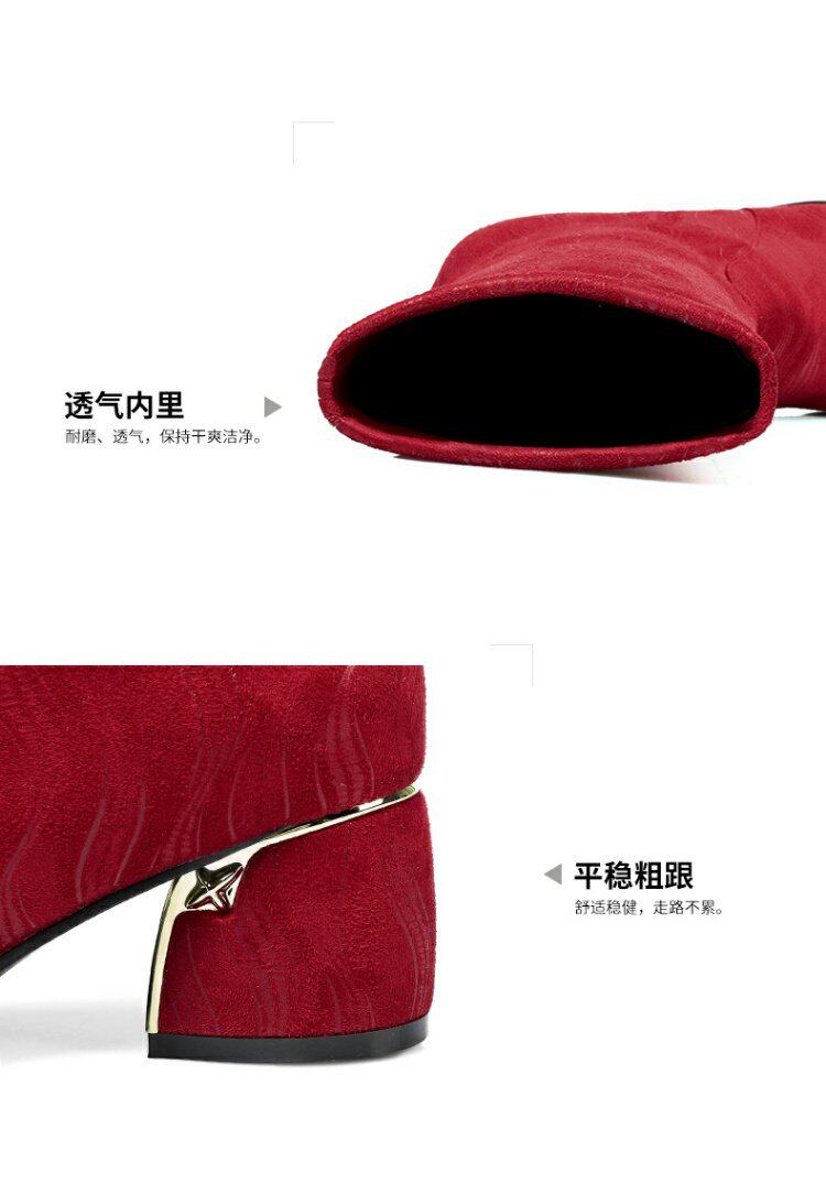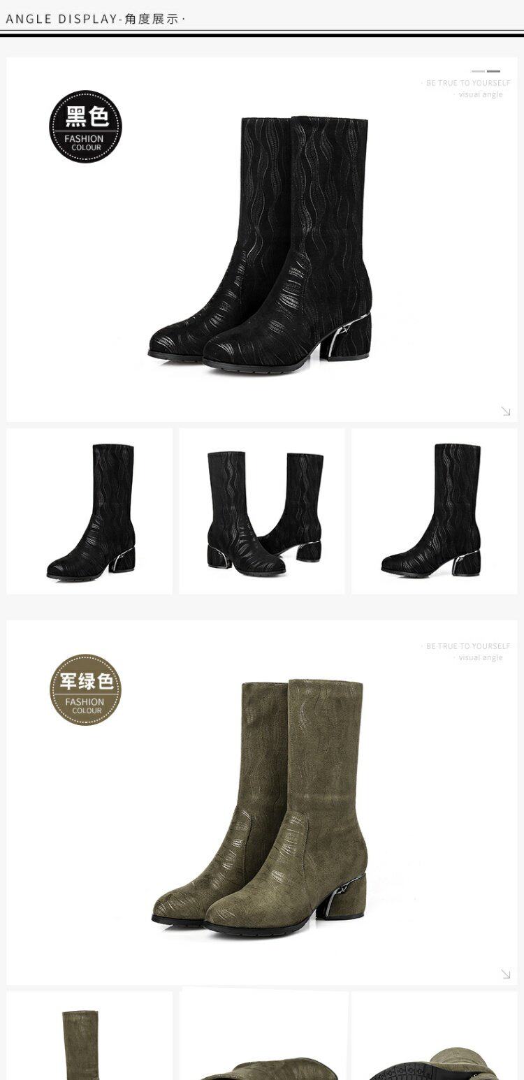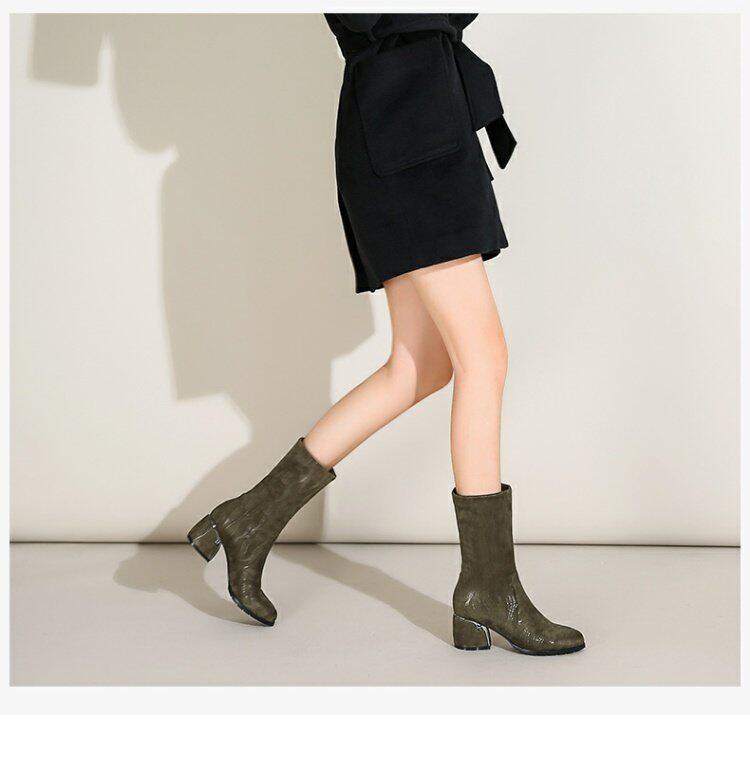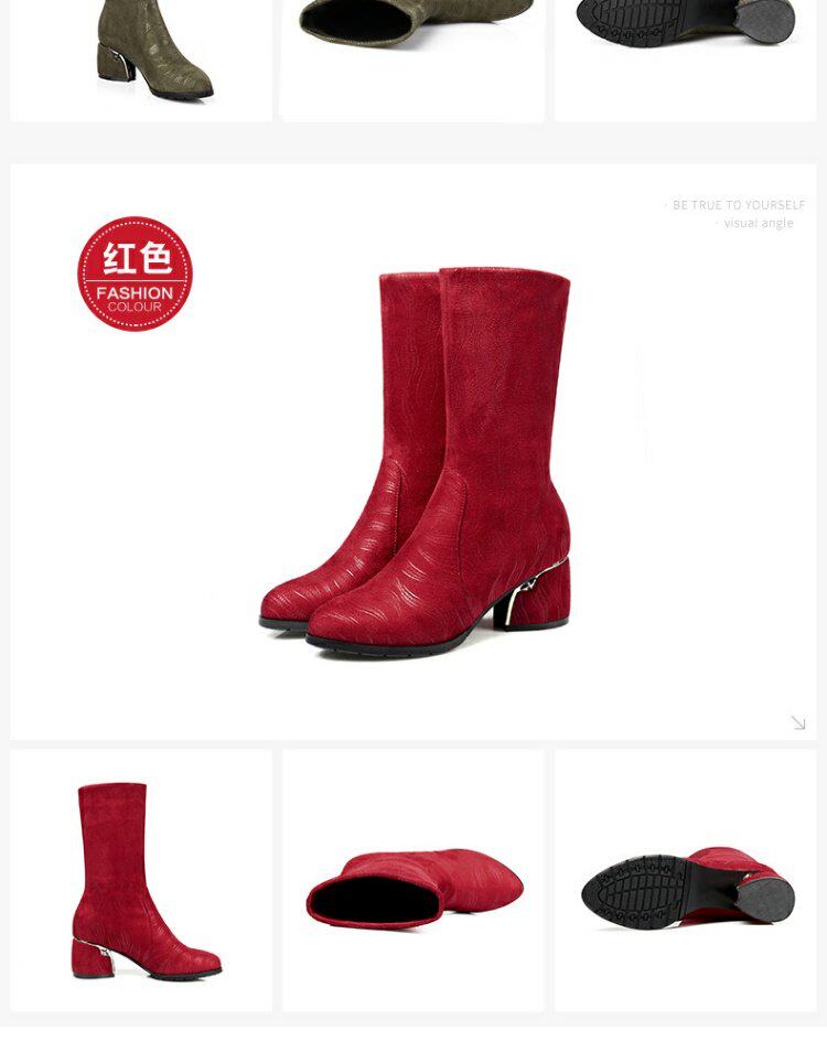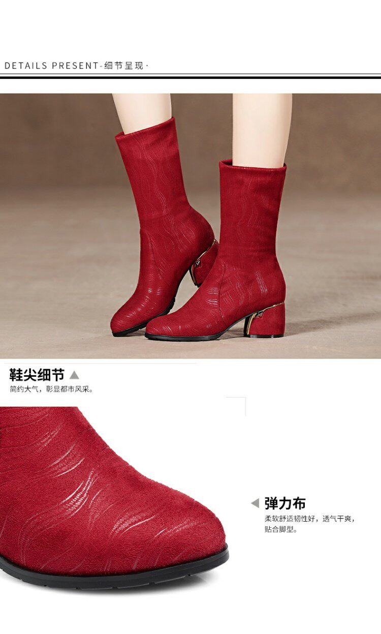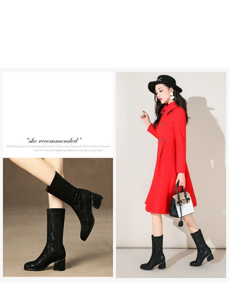 Эластичные демисезонные сапоги на высоком каблуке, вместительная и большая обувь, средней длины, большой размер