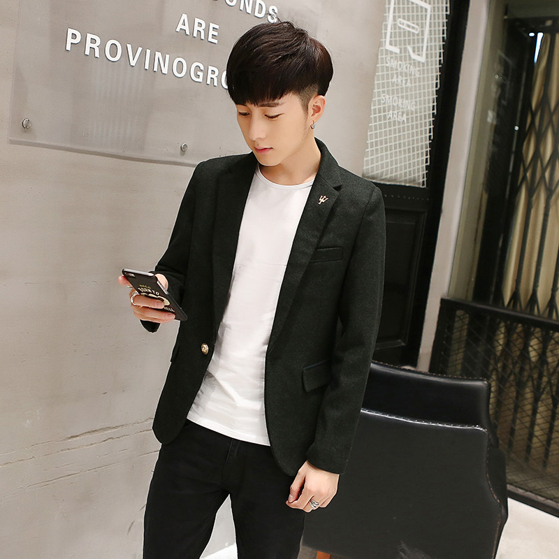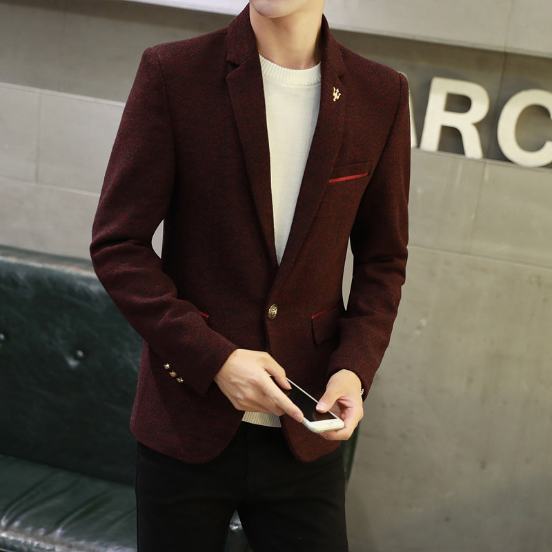 Зимняя цветная шерстяная мужская куртка, мужской пиджак классического кроя для отдыха, в корейском стиле