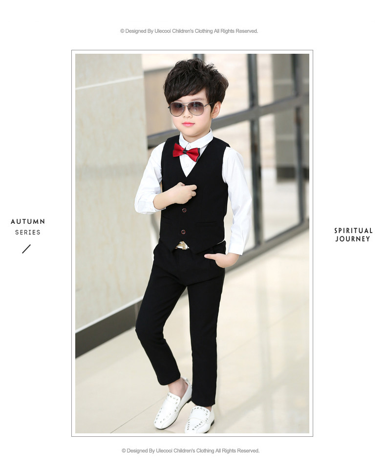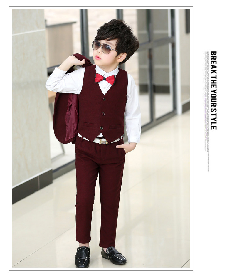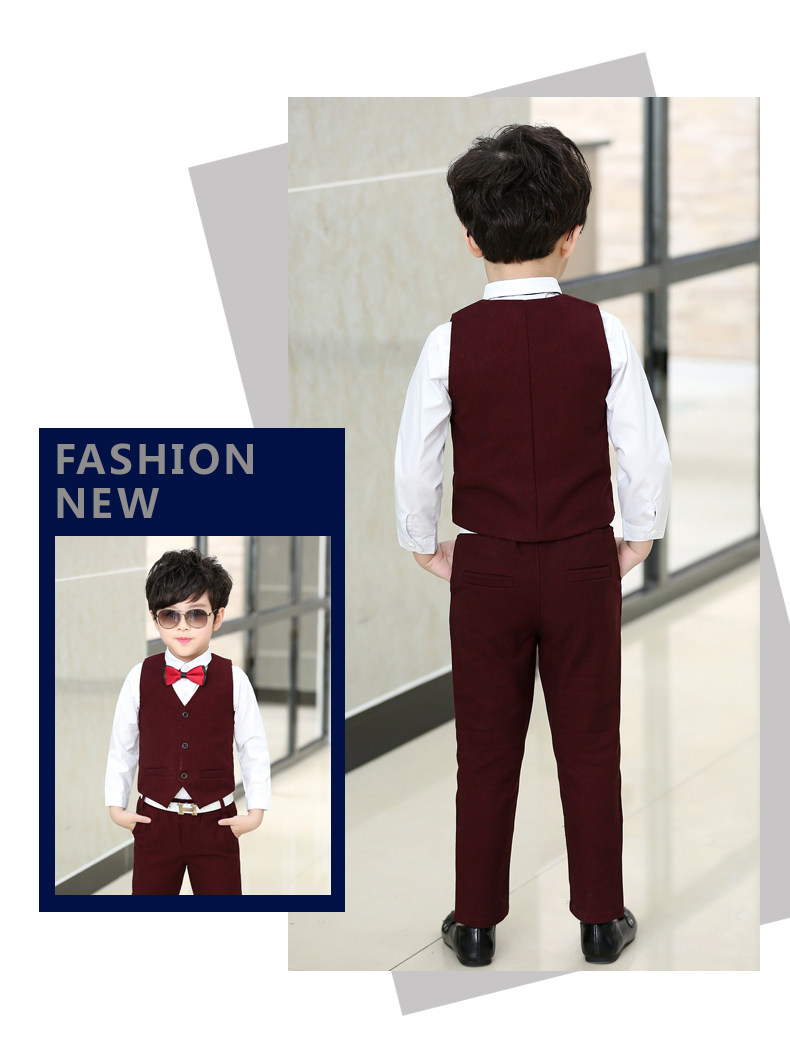 Осеннее детское свадебное платье, комплект, костюм мальчика цветочника, классический костюм, в корейском стиле, детская одежда, 3 предмета