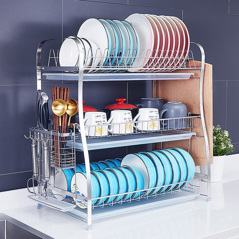 Стеллаж для хранения посуды, кухонная стойка из нержавеющей стали 304, миска для посуды, палочки для еды, тарелка, фильтр для посуды, чаша для слива воды, полка