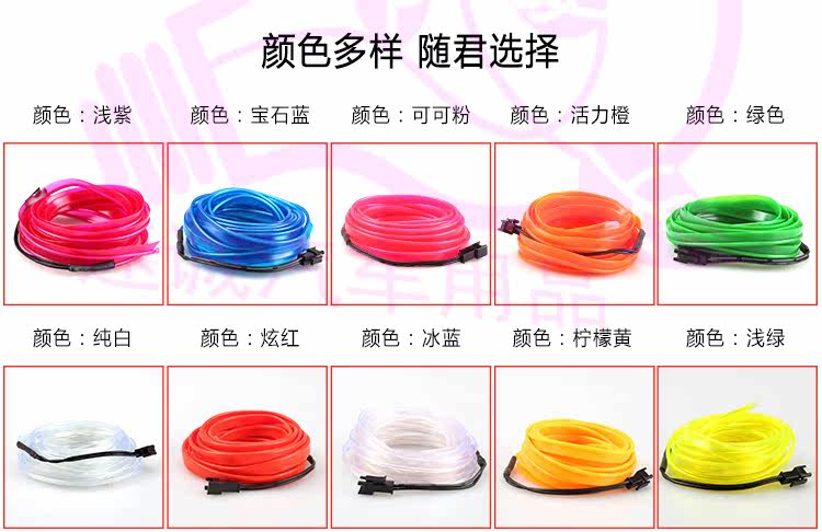 Диаметр светящегося стержня составляет 2,3 мм, с 6 -миллиметровыми краями для шитья, а установка более удобна (центральная консоль может напрямую подключить сторону к зазору, не нужно приклеить клей)
