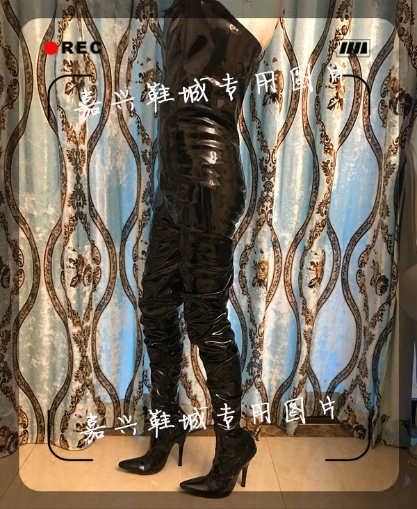 Популярные в Европе и Америке черные лакированные сапоги с запахом на груди, сапоги выше колена, цельные сапоги G301