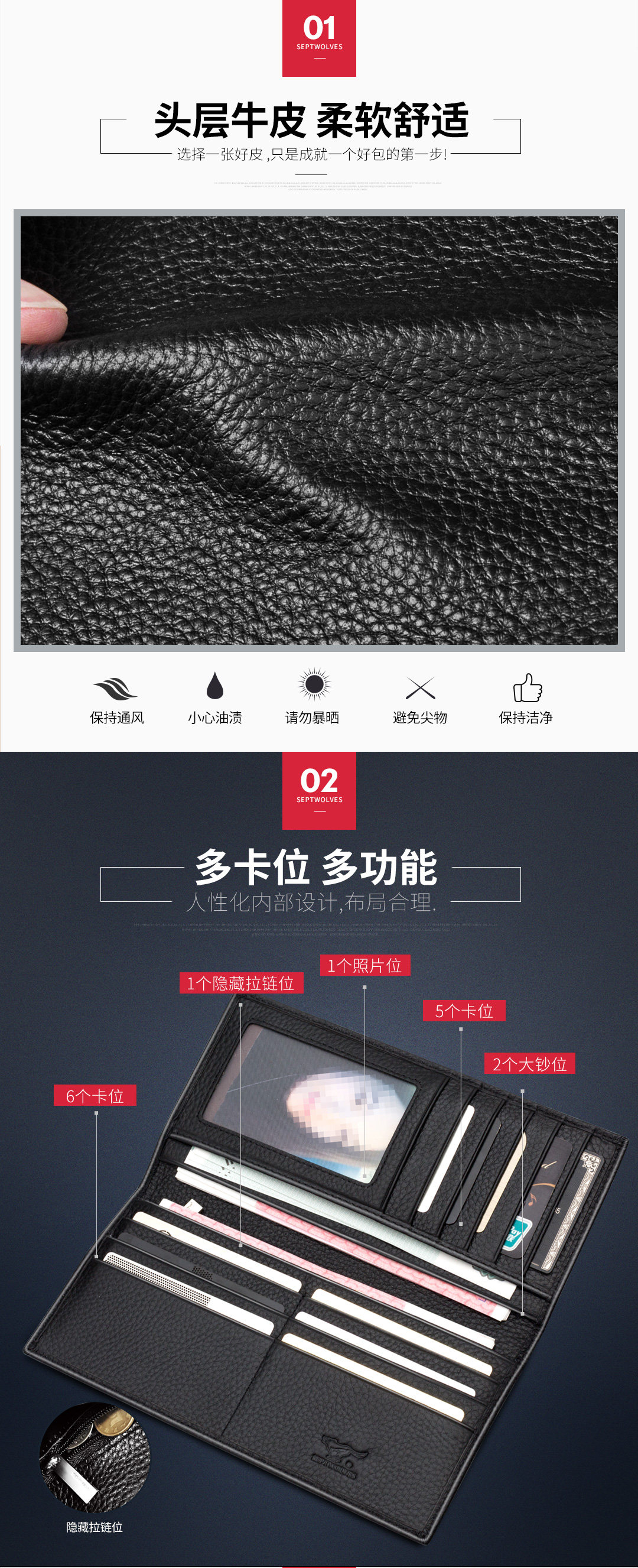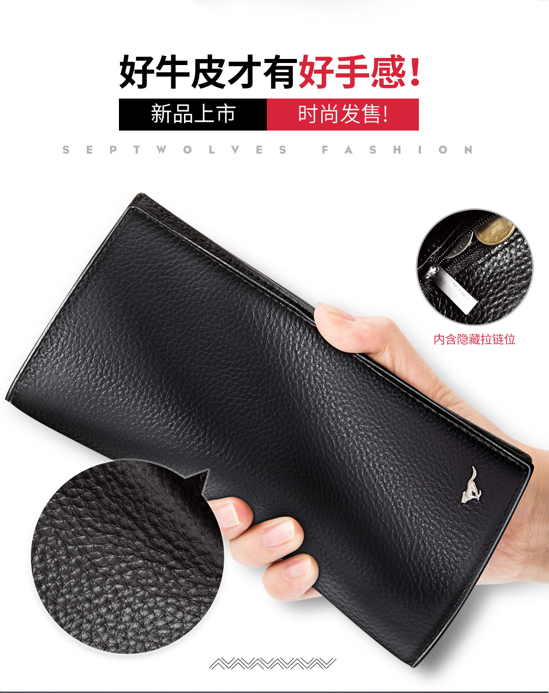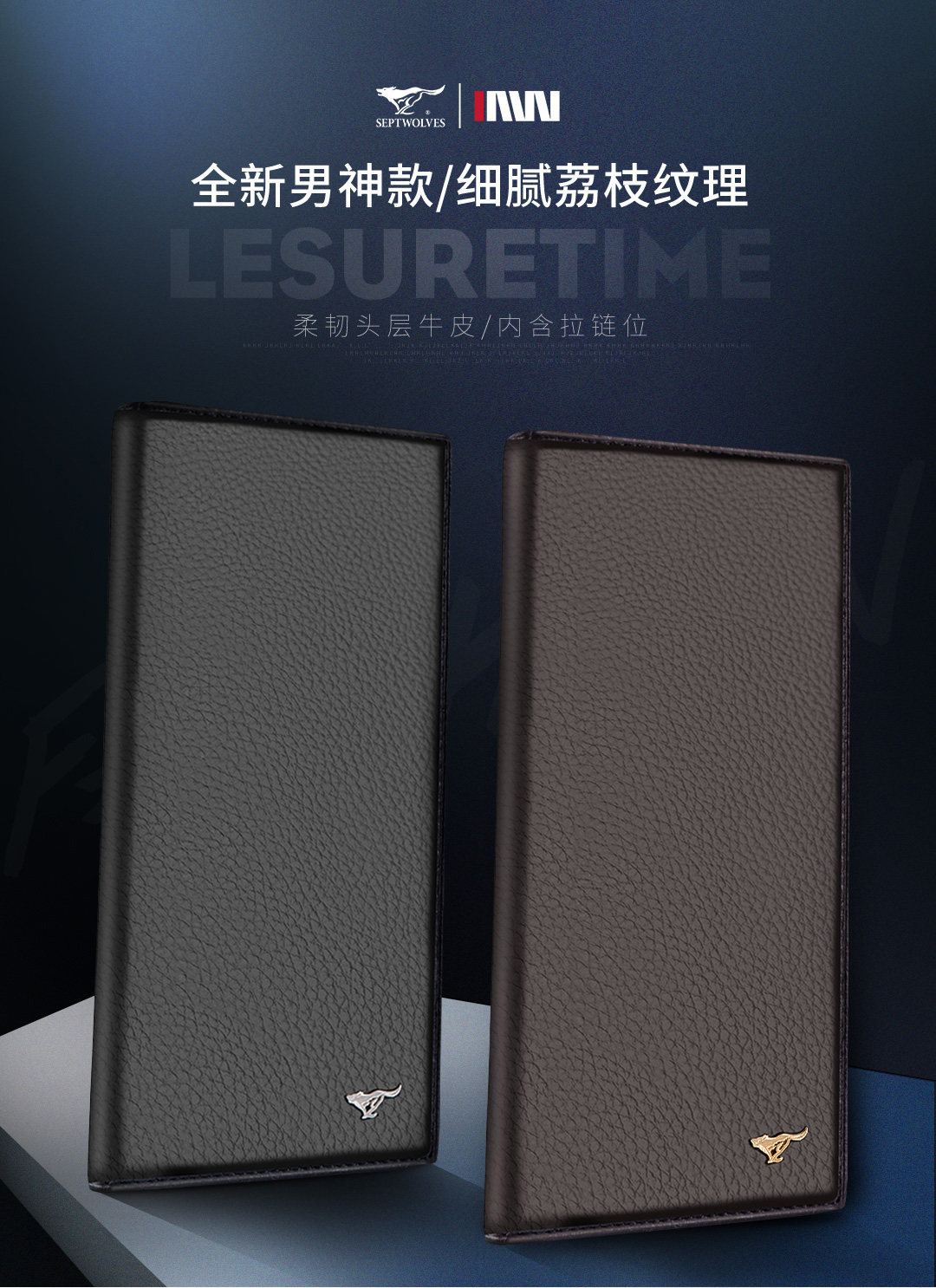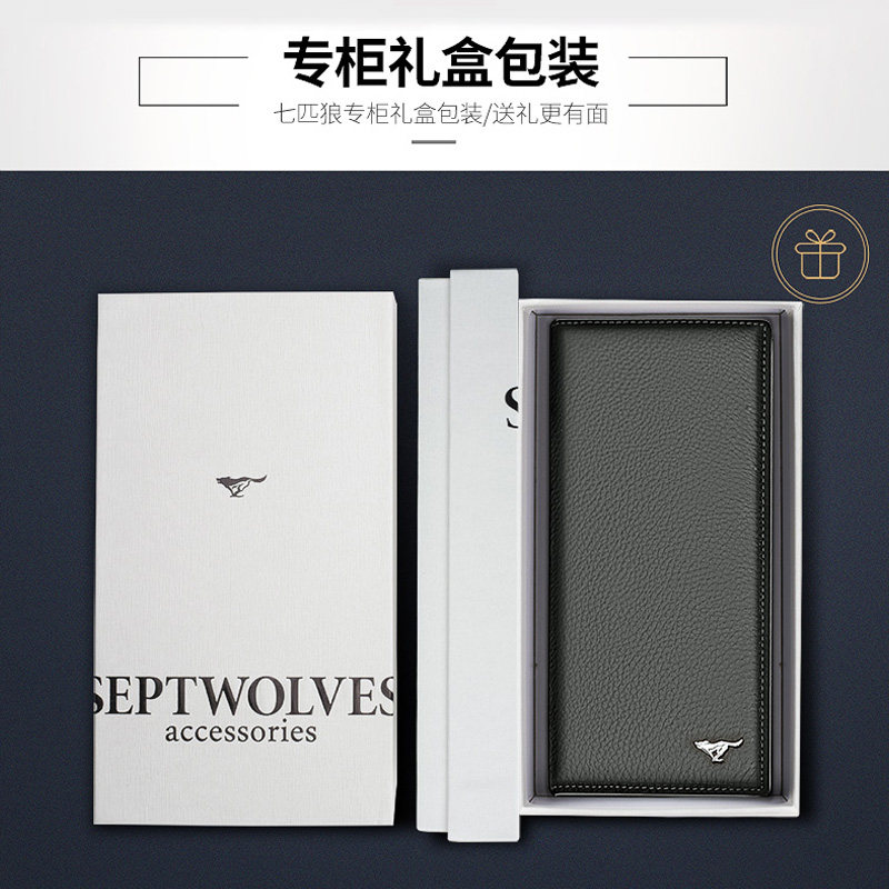Septwolves, длинный бумажник, кошелек, подарочная коробка, из натуральной кожи, подарок на день рождения