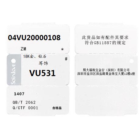 周大福 SOINLOVE XIAOXING XINXIN 18K GOLD CLEAR DIAMND SERNGS (Single) VU531 Подарок