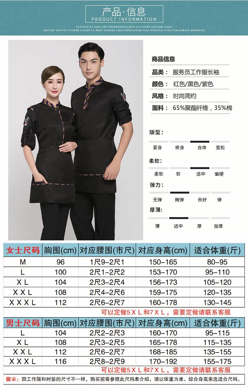 | Классификация цветов: | Женский красный+фартук, Женский черный+фартук, Женский фиолетовый+фартук, Мужской красный+фартук, Мужской черный+фартук, Мужской фиолетовый+фартук |