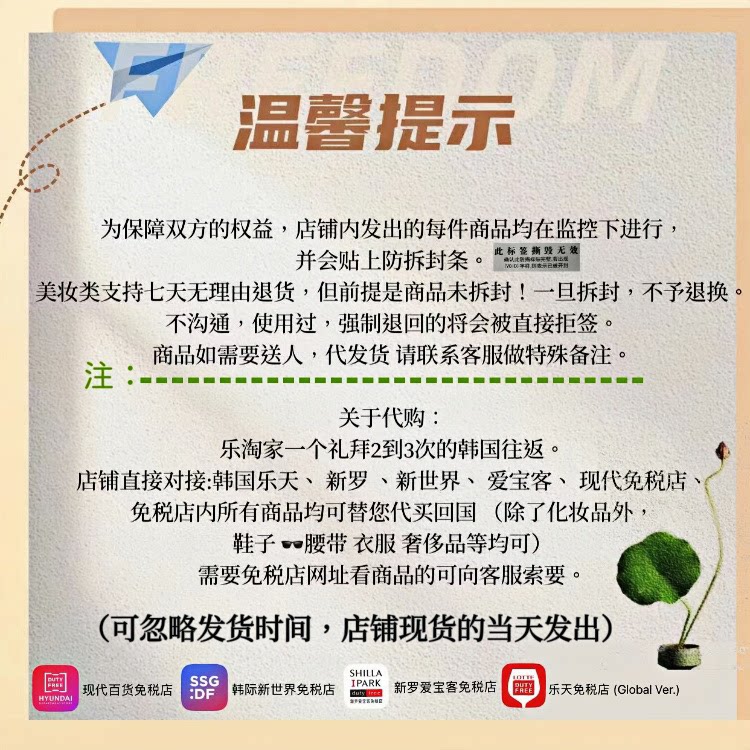 Дружественное напоминание: косметика - это специальные продукты.Мы не производители, и мы не вводем в заблуждение потребление.“Эффект средний, не воображаемый хорошо”Причина причины причины, по которой мы можем гарантировать, состоит в том, что продаваемые товары являются подлинными, принимают любую форму инспекции в магазине в корейской обязанности и приветствуют всех, кто контролирует друг друга!