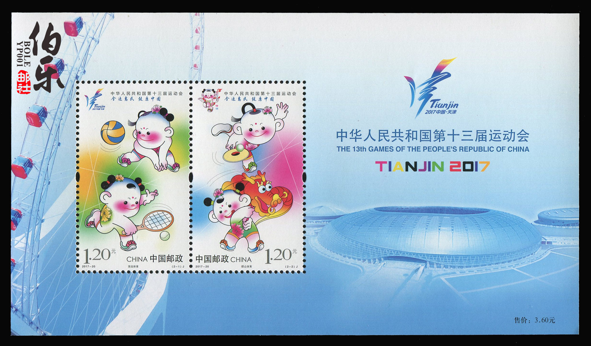 27 августа 2017 года Почта Китая планирует выпустить специальные марки «Тринадцатые спортивные игры Китайской Народной Республики» 2017–2020 годов, включающие полный набор из двух марок и сувенирного листа.Подробности следующие: