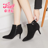 Высокие универсальные зимние ботильоны, короткие сапоги с заостренным носом, ботинки, тренд сезона, в корейском стиле