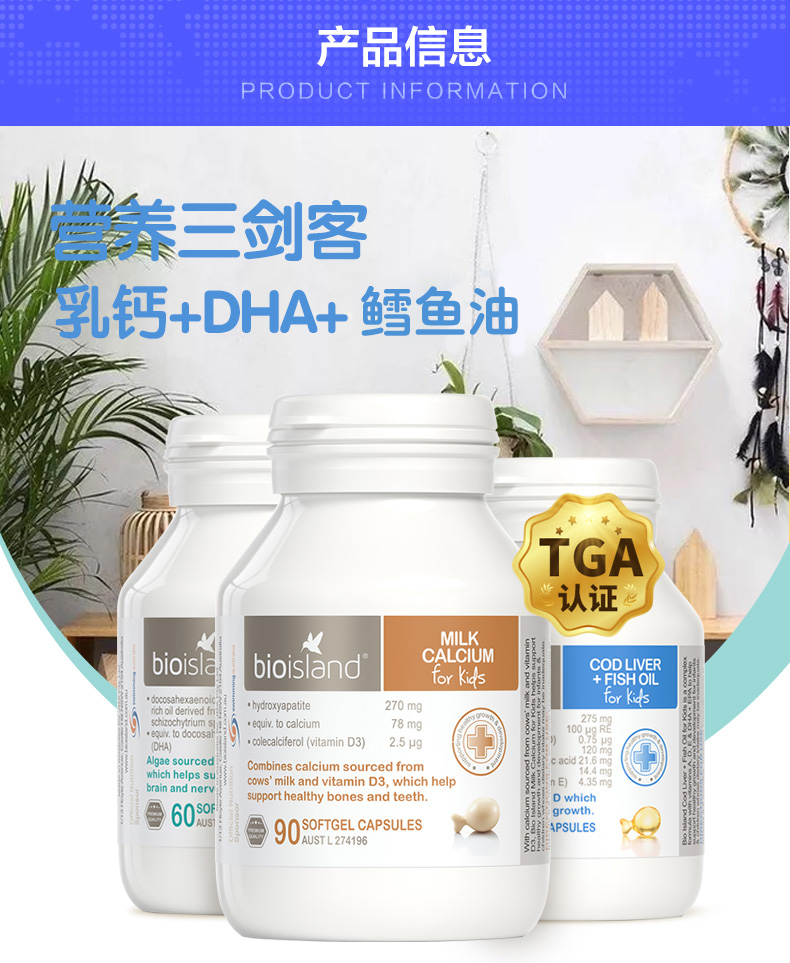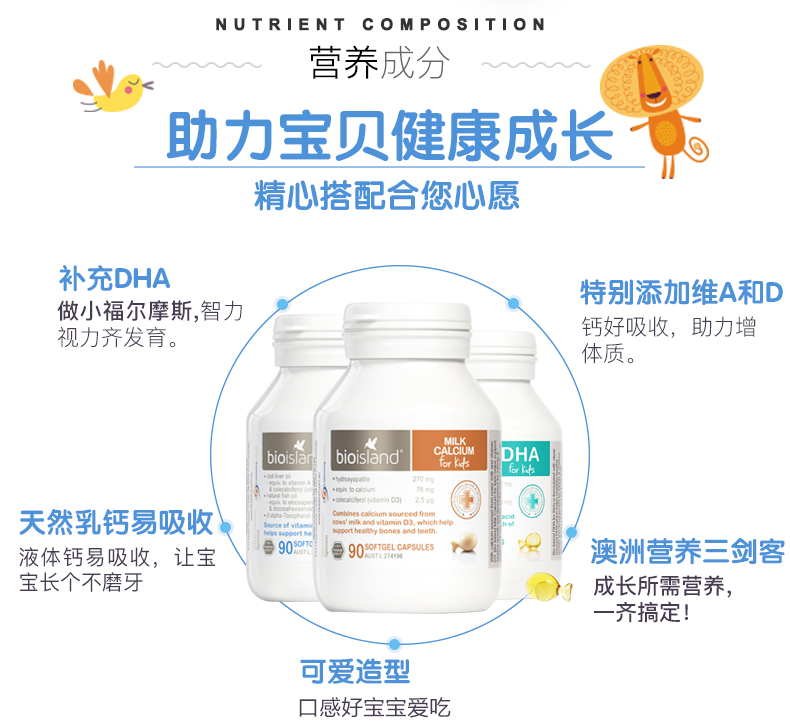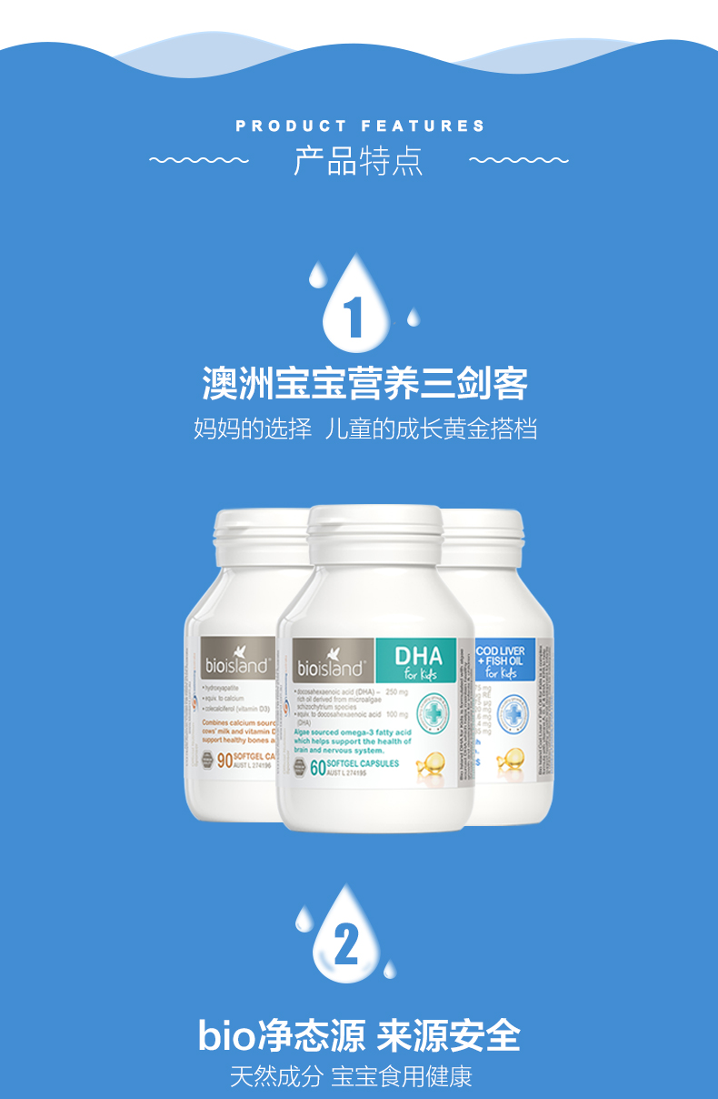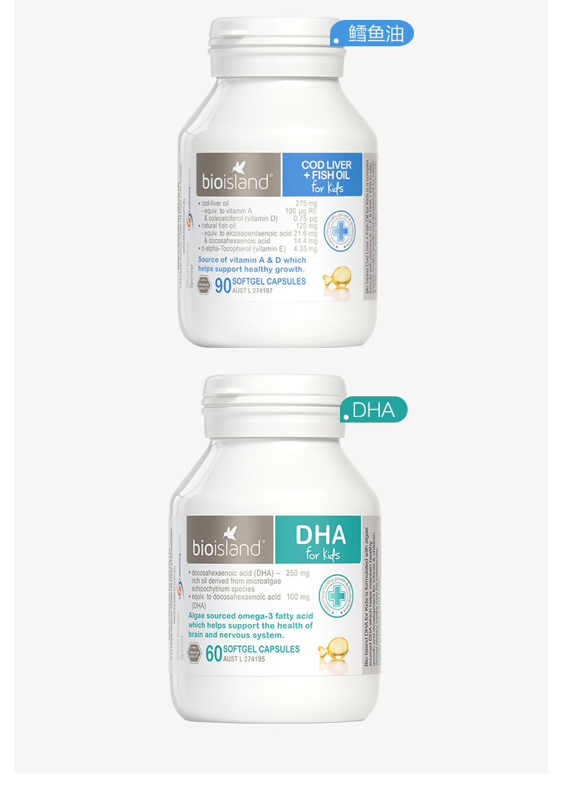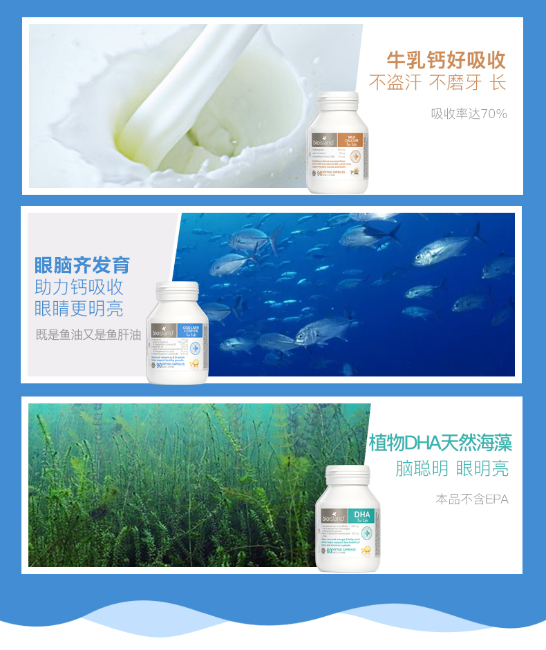 Австралийское био -остров питание Три -мечсман треска нефть печень+масло морских водорослей dha+жидкое молоко кальций
