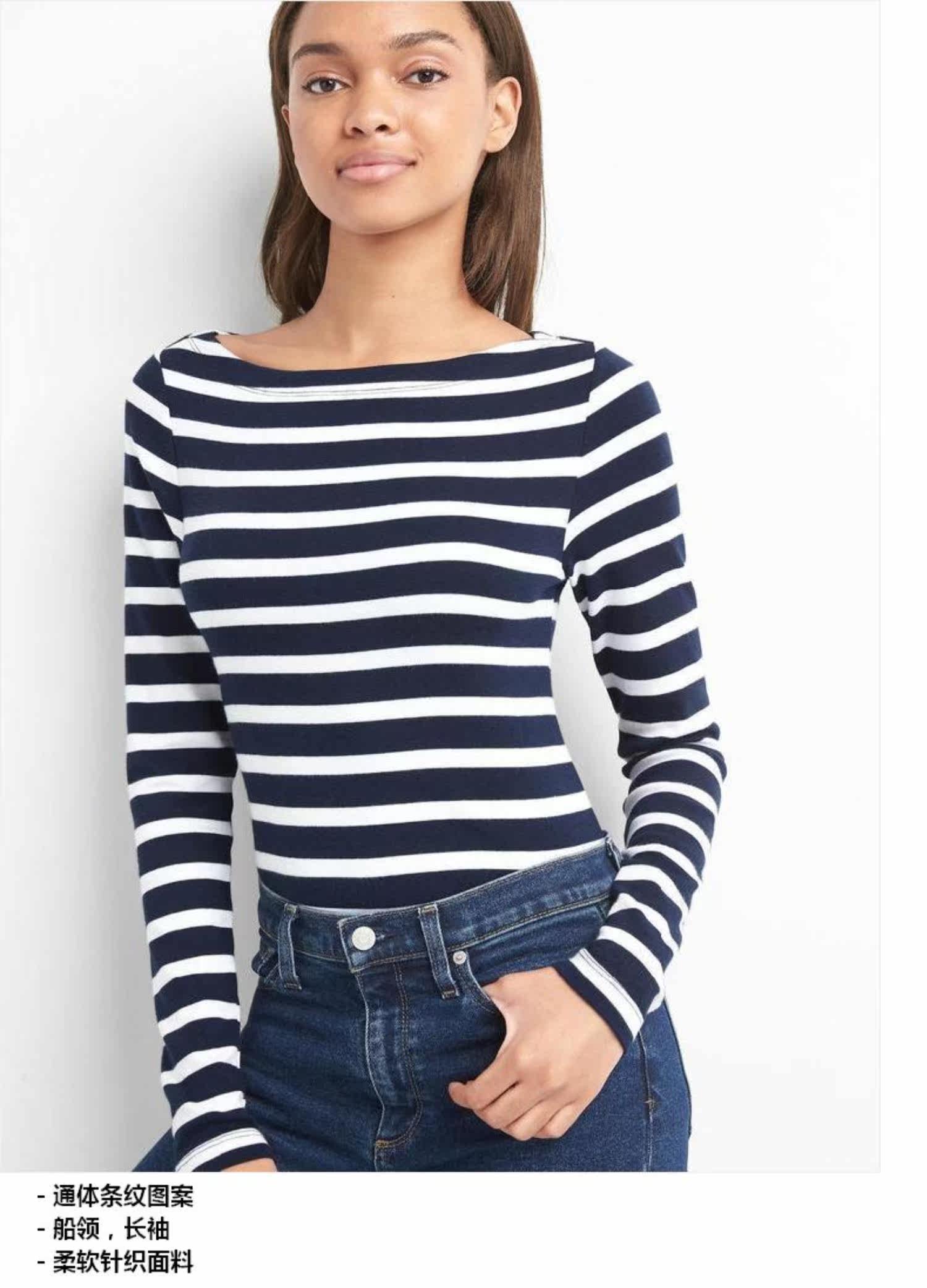 Gap Основная полосатая полосатая лодочная воротничка, упругие базовые, упругие базовые базы T -Fish 904974