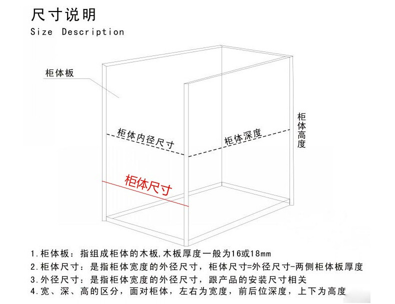 ②То, о чем мы говорим применимыми шкафами, относится к внешнему диаметру шкафа, то есть потянуть ширину корзиныWДобавьте сумму ширины орбиты и боковых пластин с обеих сторон, то есть размером с шкафа=Потяните ширину корзины+Железнодорожная ширина+Ширина боковой доски с обеих сторон.Например, спецификацияW355*D490*H470Потянуть корзину, среди нихW355Ширина корзины и дорожки была включена, а толщина боковой пластины18mm, Объединить с обеих сторон вместе36mmДобавлять355Вот и все391 мм (приправаОрбита представляет собой пространство с не менее 10 мм на обеих сторонах нижней пластиныПолем, то есть400Шкаф.