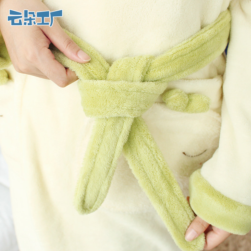 云朵工厂 Демисезонный коралловый бархатный банный халат для отдыха, пижама с капюшоном, лонгслив, увеличенная толщина