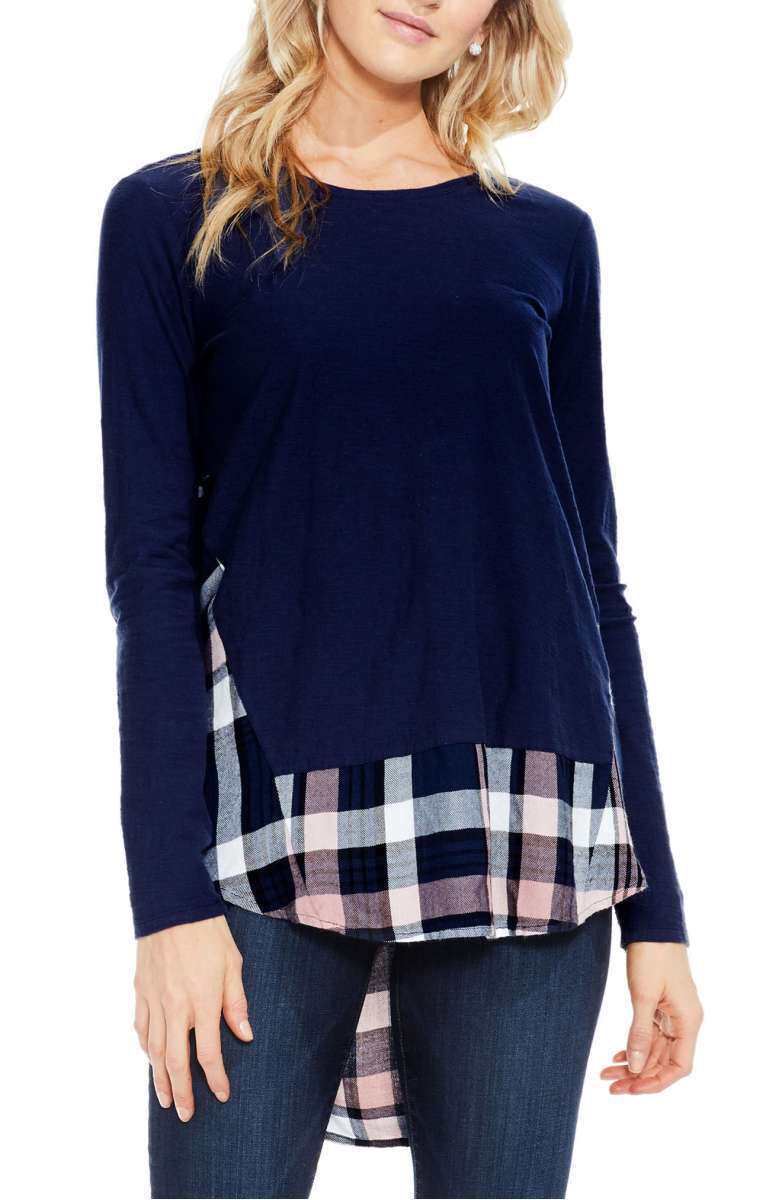 Стиль в колледже, клетчатая контрастная T -мала