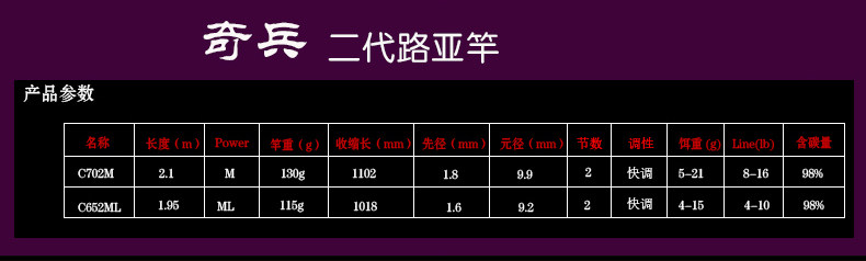 Все материалы корпуса удилища приманок Qibing второго поколения производятся в Японии.“TORAY”Специальное углеродное волокно компании 30TON, пробковая ручка класса 3A, сочетает в себе передовой дизайн и технологию производства, имеет отличную тональность, быструю проводимость, изысканное качество изготовления и полную прочность талии. Будь то передача рыбы или подъем удочки для подсечки рыбы, это должно дать вам ощущение качественной удочки.В колесной базе удилища Qibing используются новые FUJI VSS-16# и ACS-16#, которые позволяют чувствовать себя комфортно, одновременно повышая точность и стабильность заброса.Рукоятка удилища имеет эргономичную форму, обеспечивающую комфорт при каждом забросе.В направляющих кольцах Qibing используются направляющие кольца FUJI K серии A, расположенные в НОВОЙ КОНЦЕПЦИИ, и положение каждого направляющего кольца разумно распределяется в соответствии с кривой веса подвешенной удочки, так что точка напряжения удочки может достичь хорошего состояния.Изысканная отделка и импортная краска значительно улучшили качество удочки. Хорошая удочка является продолжением руки ловца, и вы можете наслаждаться рыбалкой, отдыхая!