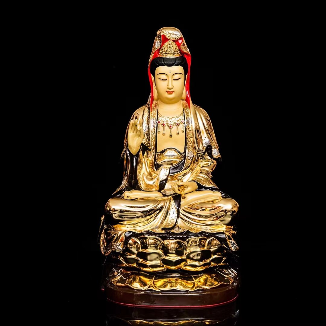 Держа сетка бутылка Lotus guanyin Статуя Shengfan Pure Bronze Carving 24K Real Gold High 42 -см. Благоприятный орнамент SB01