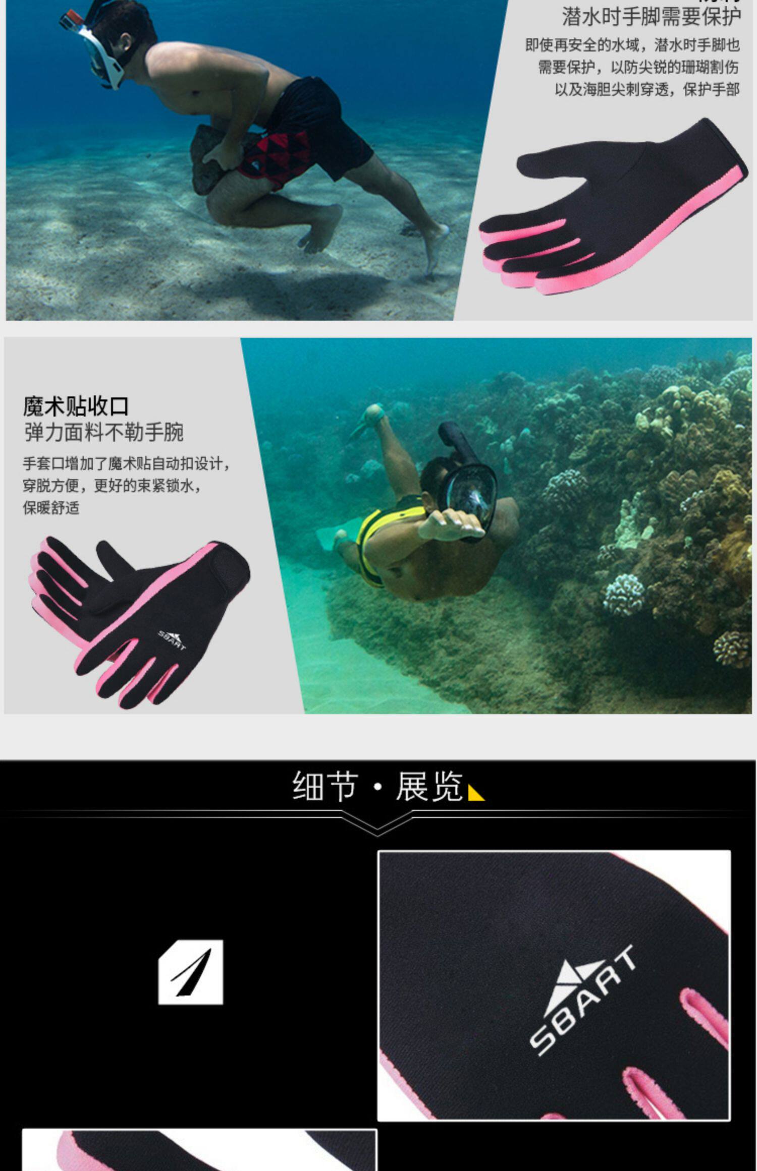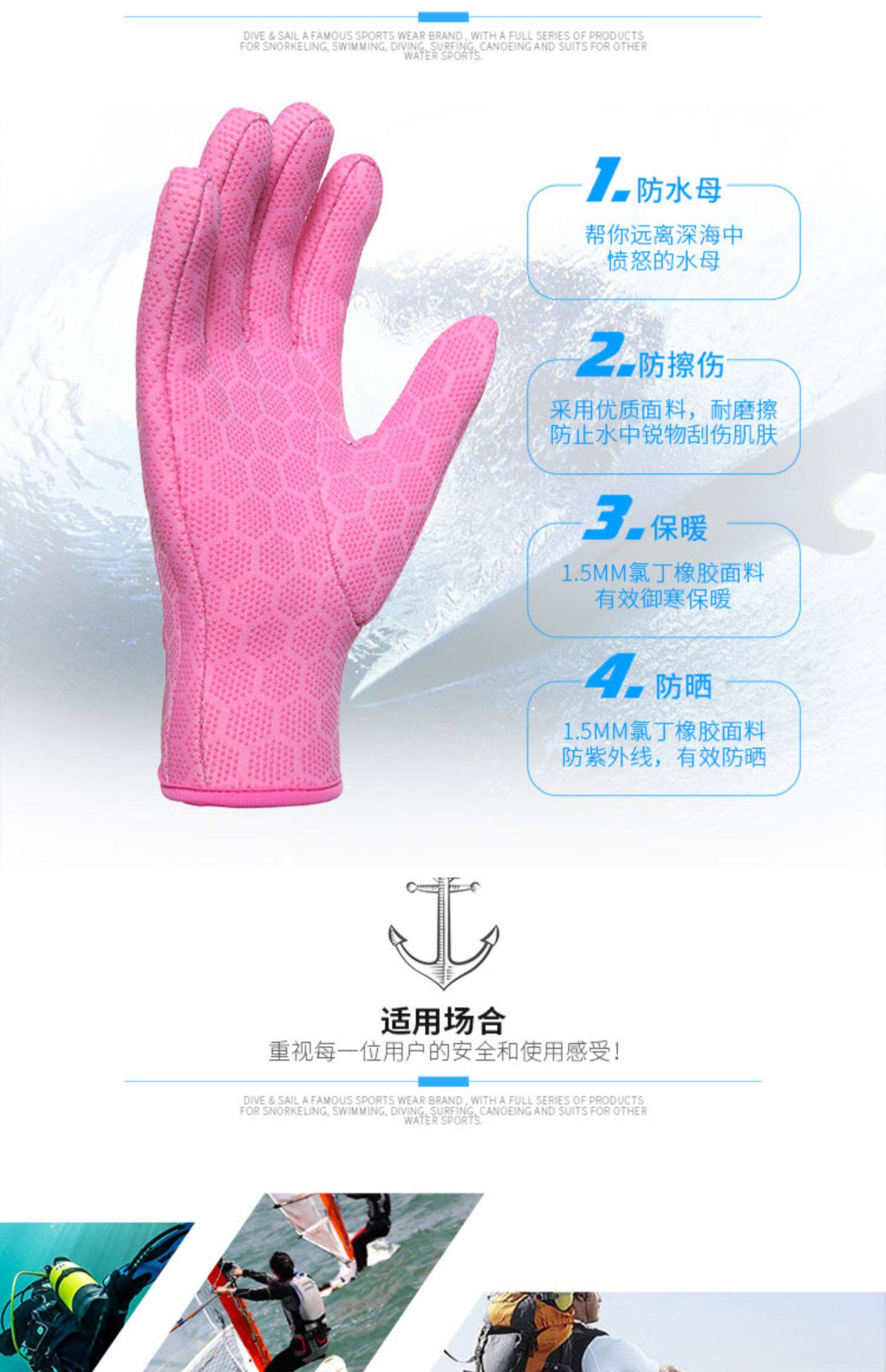 Нескользящие коралловые зимние износостойкие перчатки, 3mm