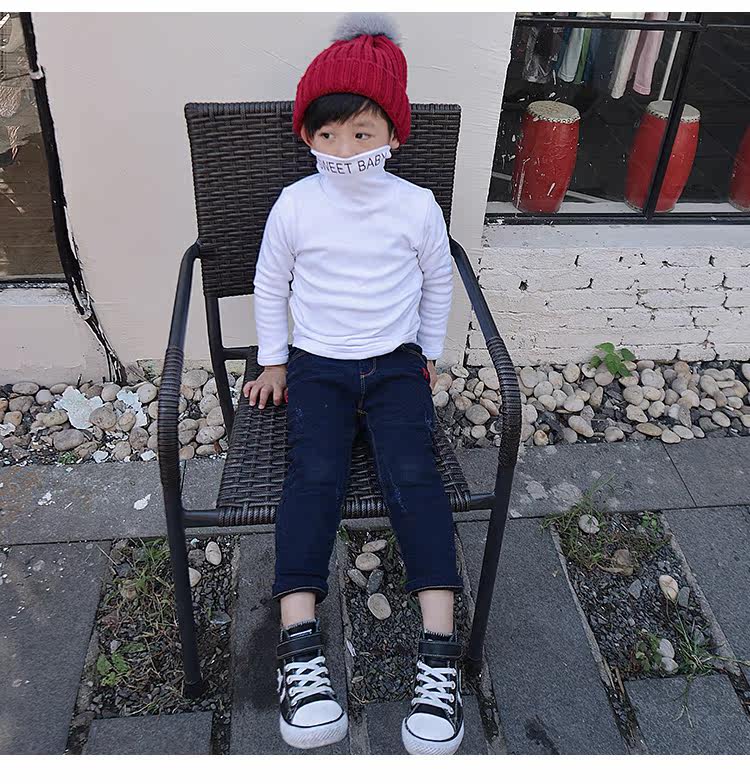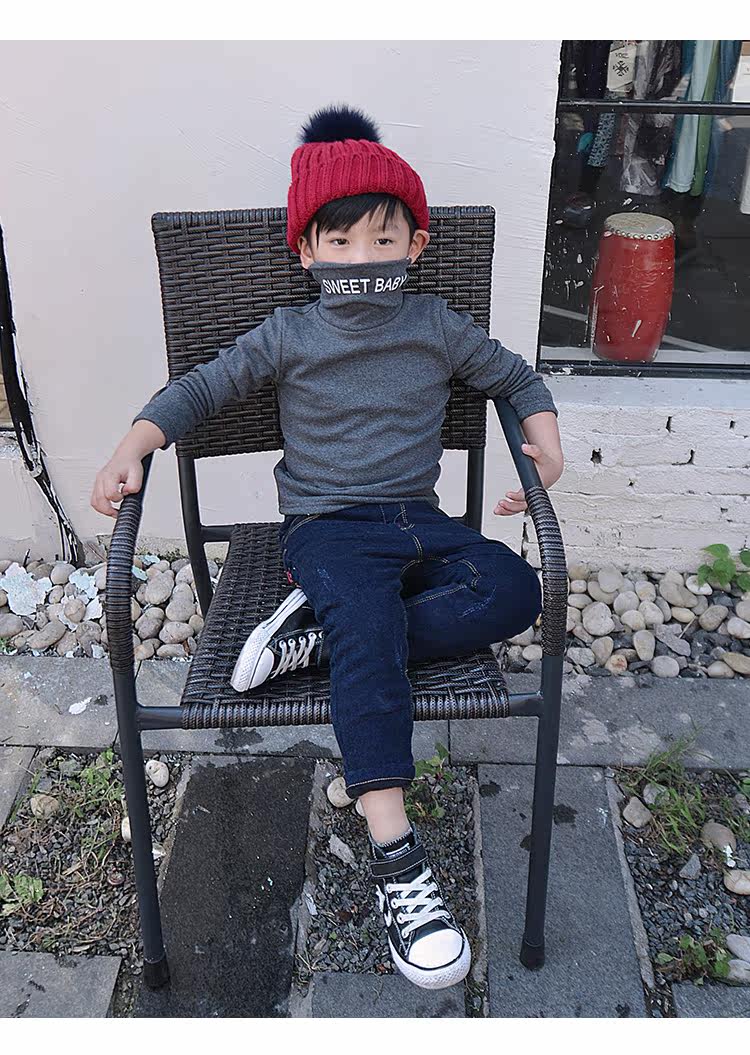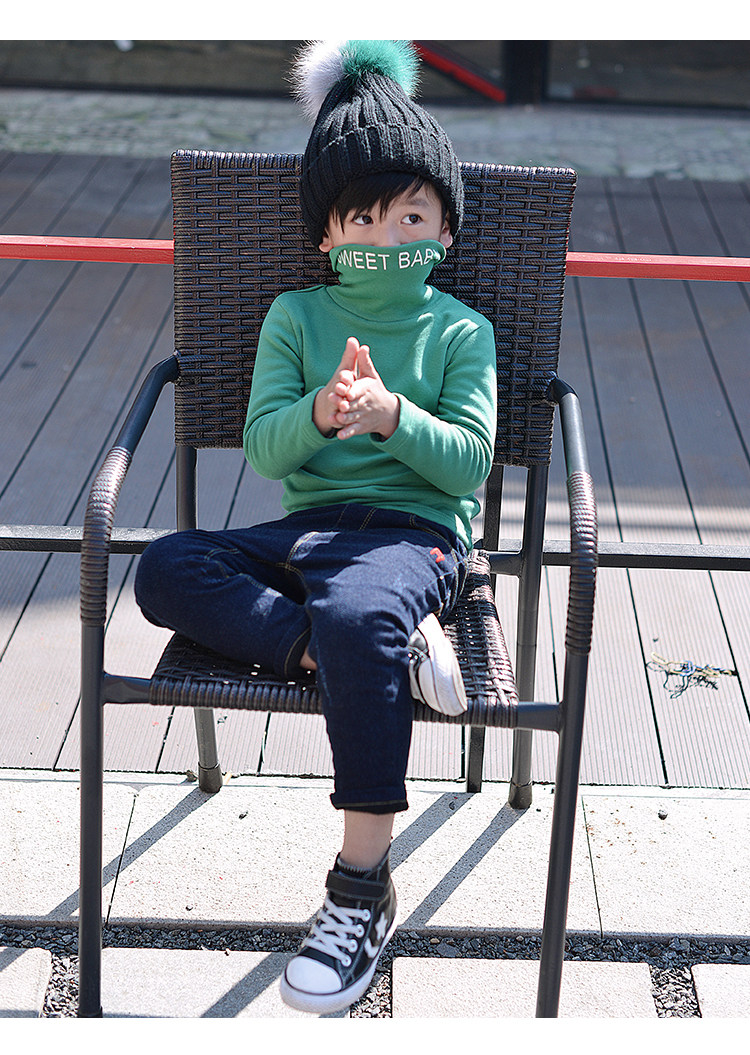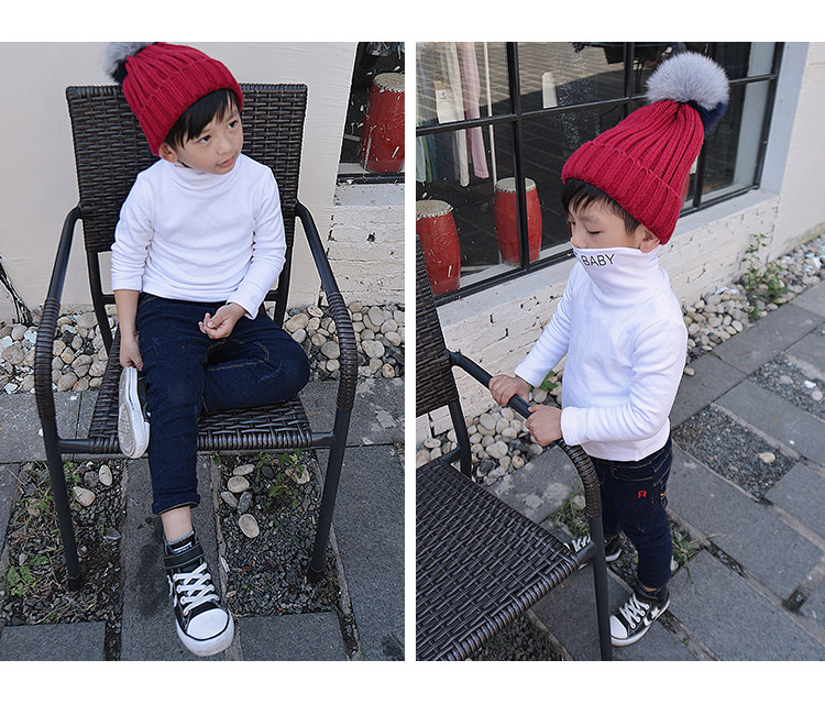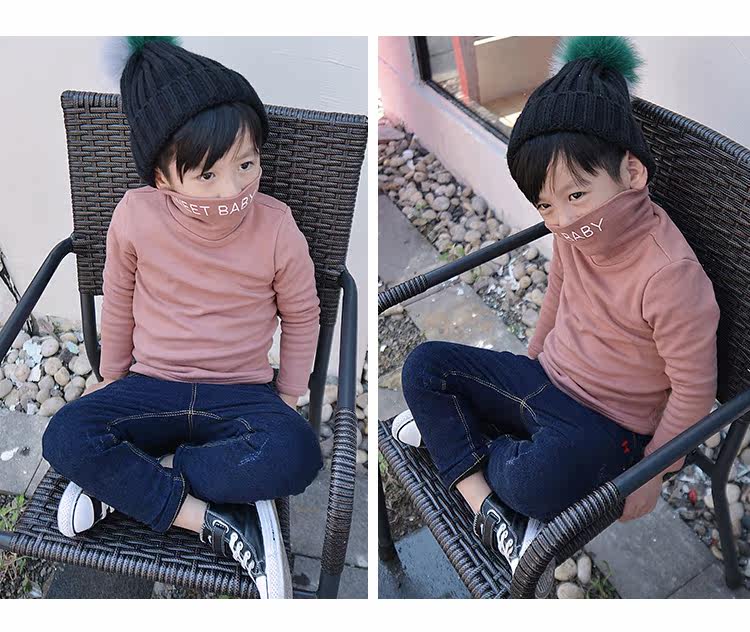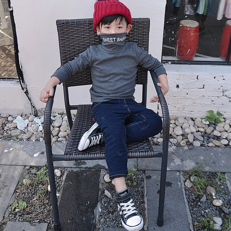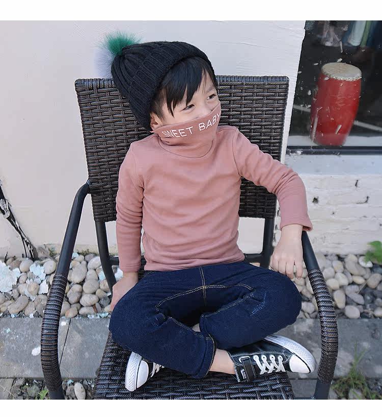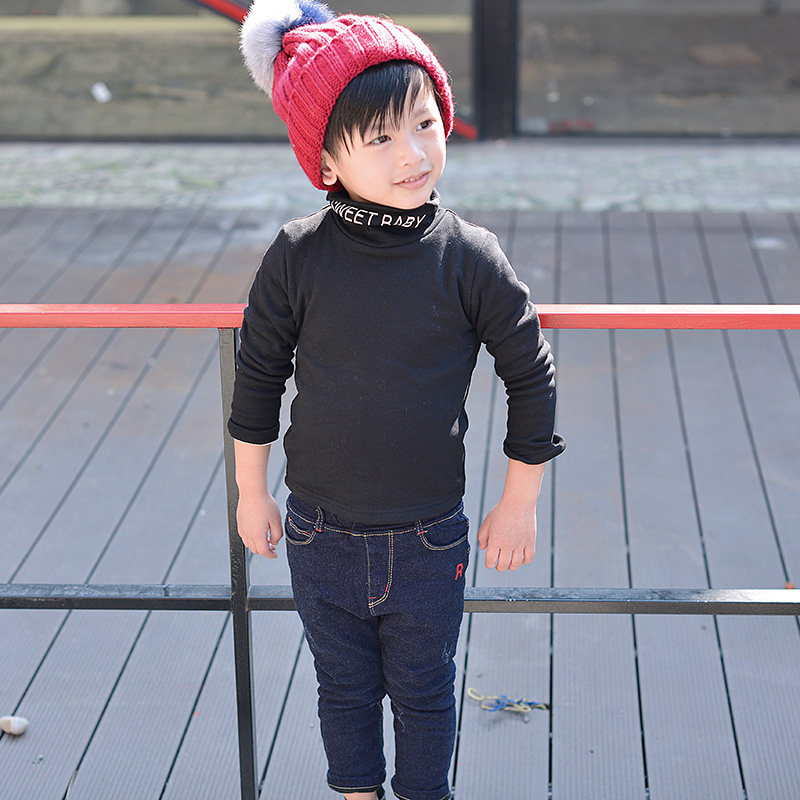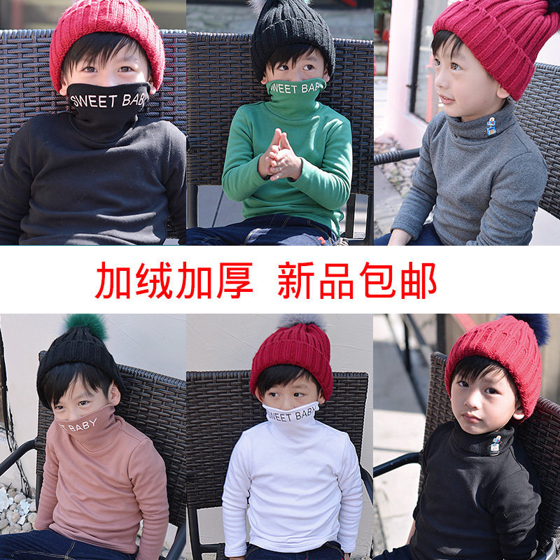 Демисезонная флисовая базовая приятная телу футболка для мальчиков, детское утепленное термобелье, 2020, высокий воротник, в корейском стиле
