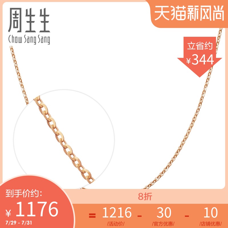 周生生 Золотая цепочка, ожерелье, розовое золото, золото 18 карат
