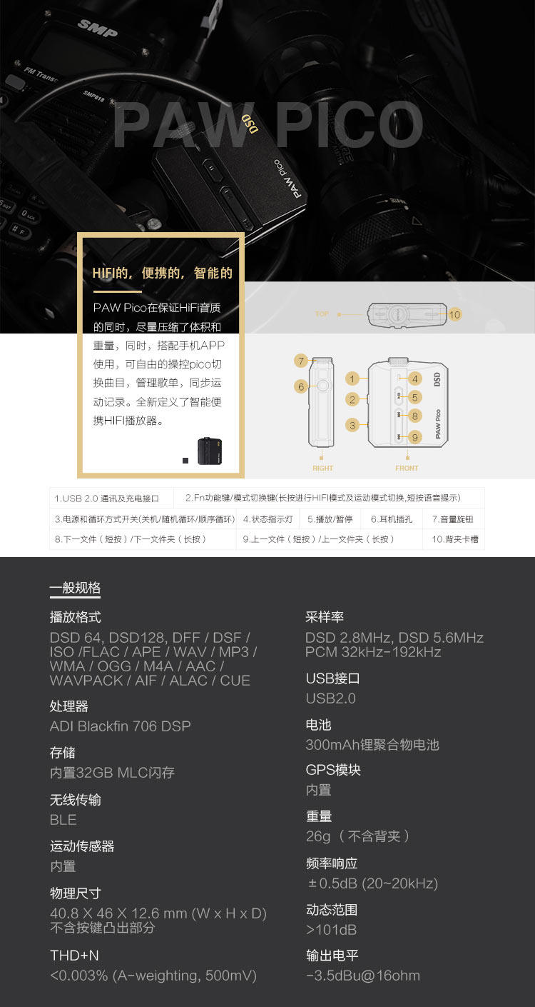 Lotoo Paw Pico DSD не -пронизая музыкальный проигрыватель интеллектуальный Hifi Sports Mini mp3
