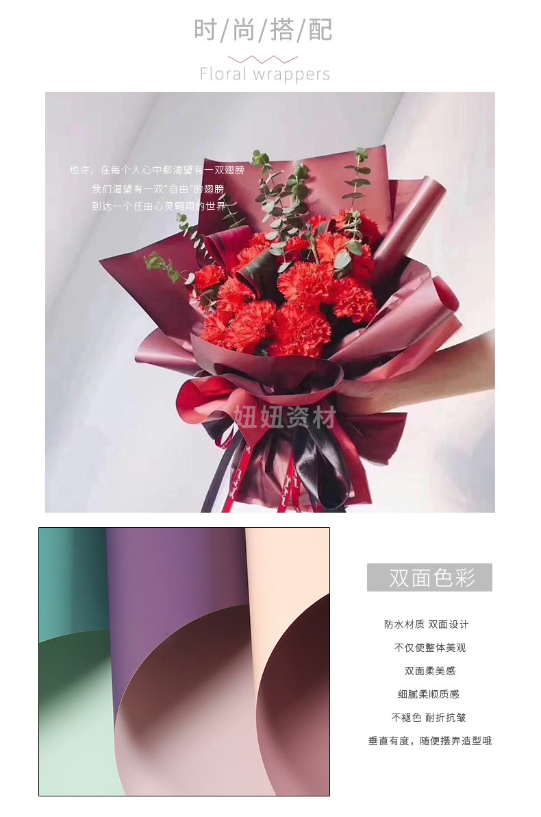 Двусторонная упаковка, двухцветный водонепроницаемый цветочный магазин, хлеб, букет