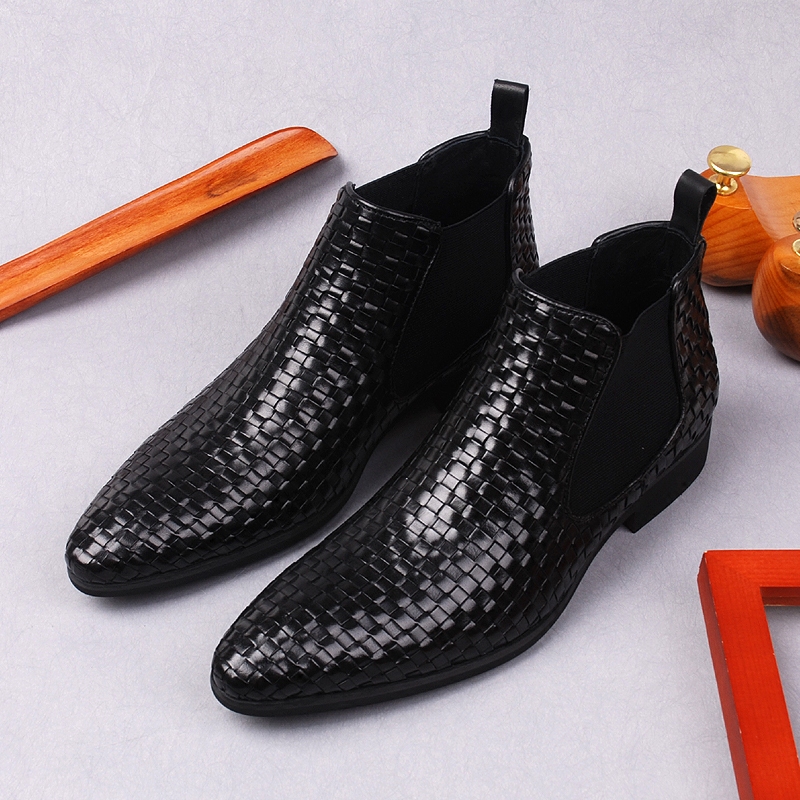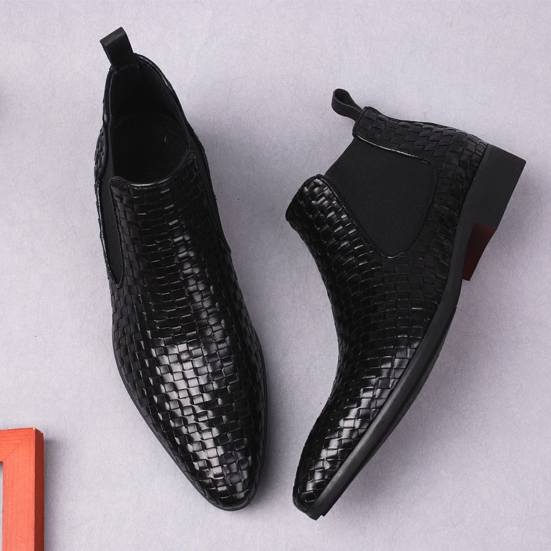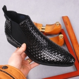 Плетеный пиджак классического кроя, короткие сапоги, челси, европейский стиль, из натуральной кожи