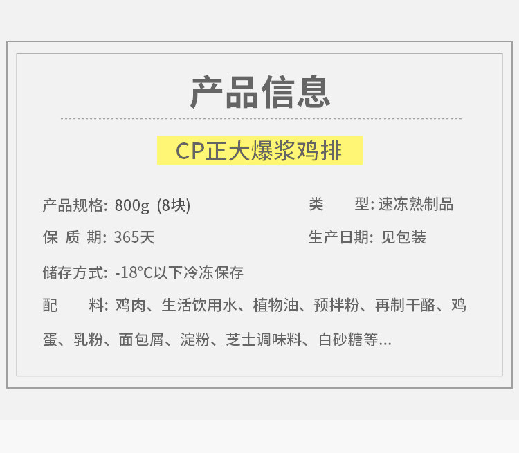 Описание продукта: производится высококачественная куриная отбивная, что довольно вкусно!Чего же ты ждешь!Более 20 юаней могут съесть 8 взрывных куриных стейков дома!Это цена капусты!Нажмите несколько раз по телефону, куриный стейк доставляется домой, вам просто нужно жарить на сковороде!Сыр внутри тоже восхитителен!