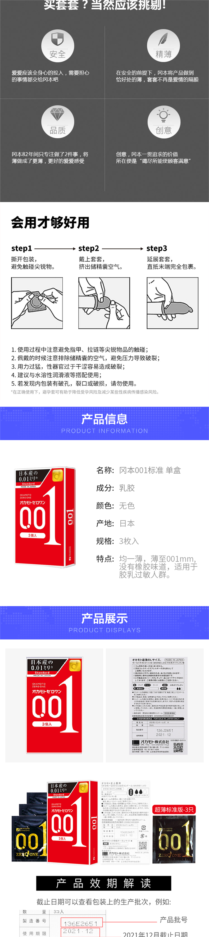 Okamoto 001 Condom 3 ящики с ультра -тщательно длительным преждевременным страхованием эякуляции.