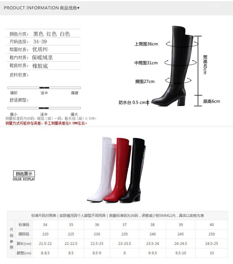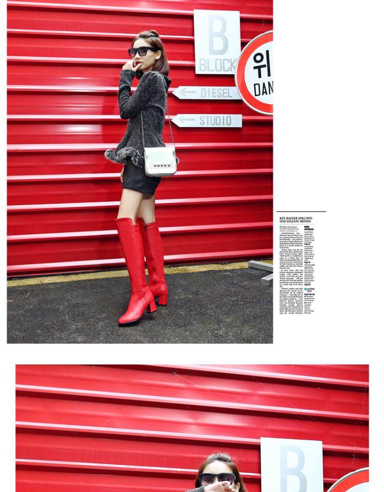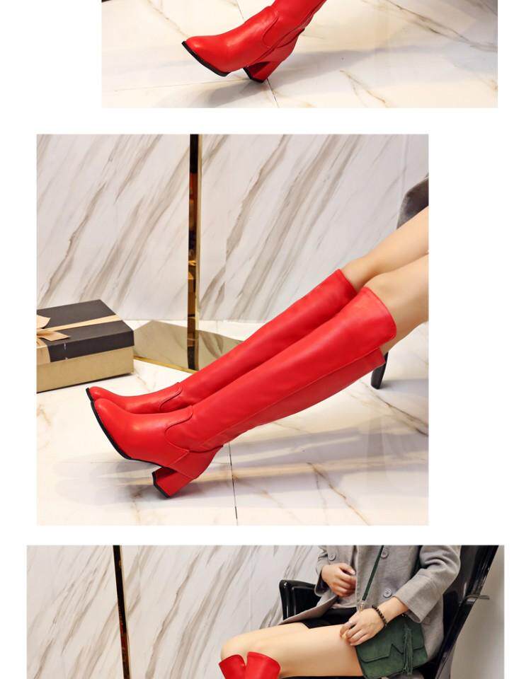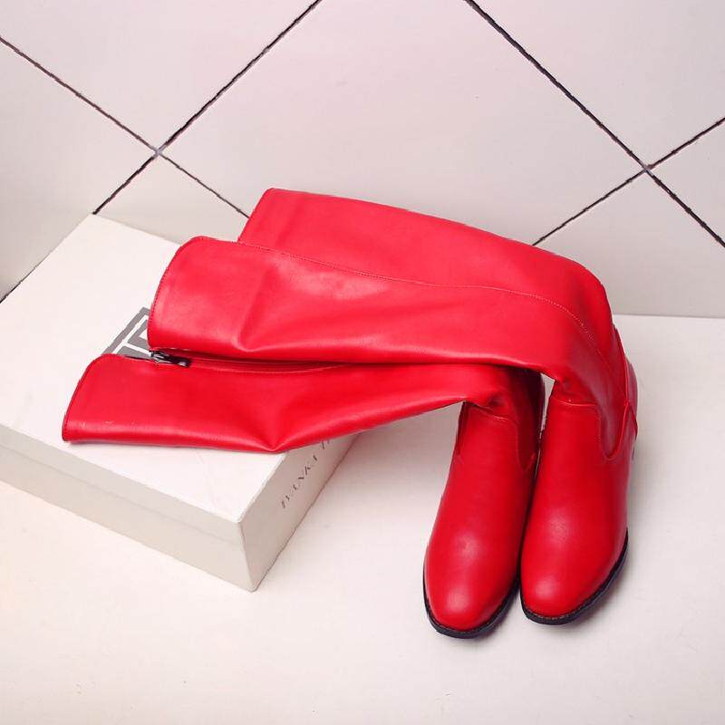 Красные полиуретановые флисовые высокие сапоги, европейский стиль, большого размера (40-43), большой размер