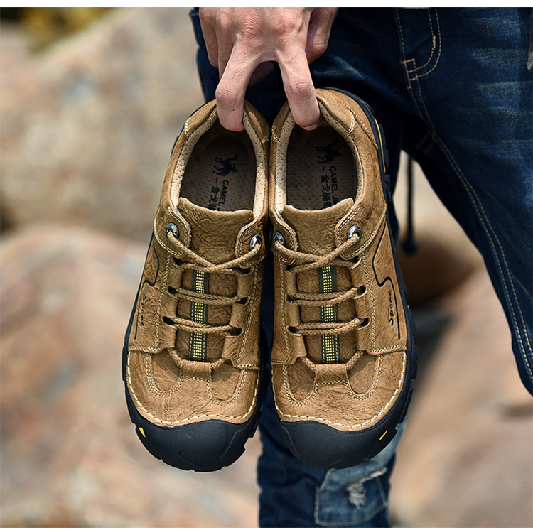 Западная верблюжья походная обувь Мужская натуральная кожа Водонепроницаемая нескользящая износостойкая дышащая спортивная повседневная обувь Уличная походная обувь для мужчин