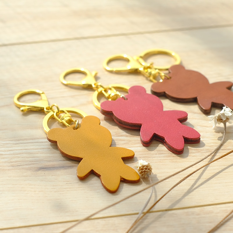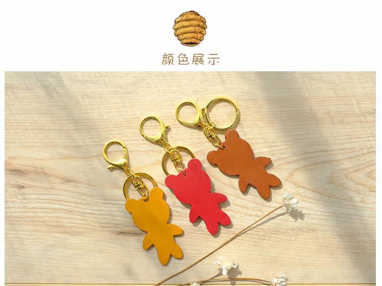 Брелок ручной работы, подвеска, аксессуар, кожаная сумка, упаковка, милый декор для ключей, DIY, с медвежатами, воловья кожа