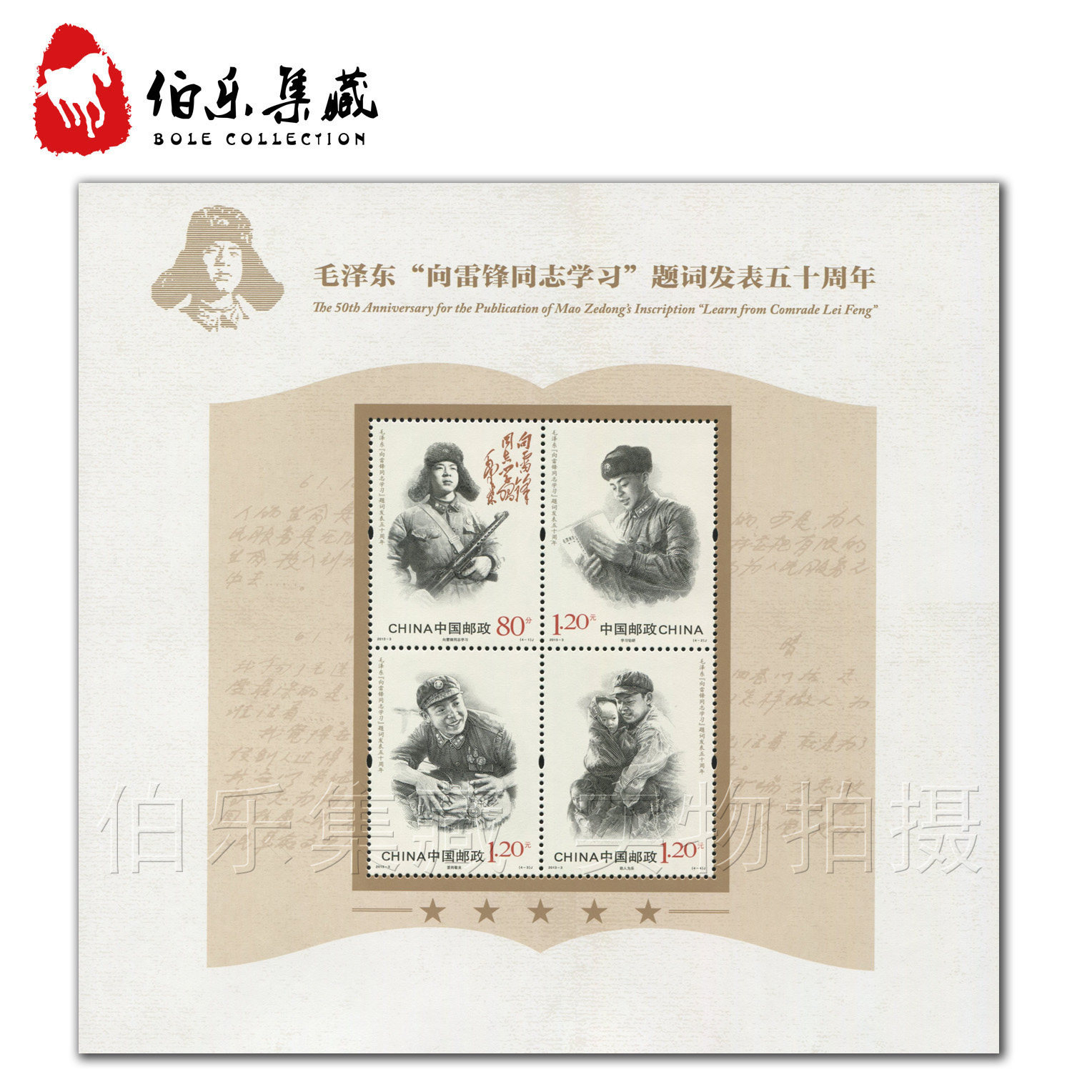 China Post планируется выпустить 5 марта 2013 года "Mao Zedong“Учиться у товарища Лей Фэн”50 -летие надписи «памятные марки 4 набора из 4 комплектов марок.Детали следующие: