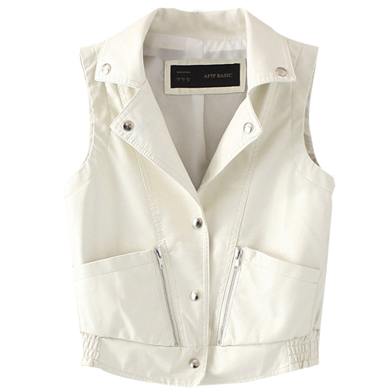 Короткий осенний полиуретановый жилет без рукавов, коллекция 2023, в корейском стиле