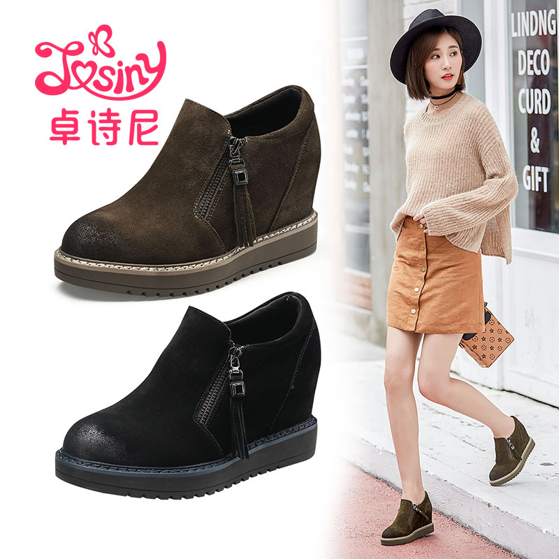 Демисезонная высокая повседневная обувь, модель весна/осень 2019 года, тренд сезона, в корейском стиле, из натуральной кожи