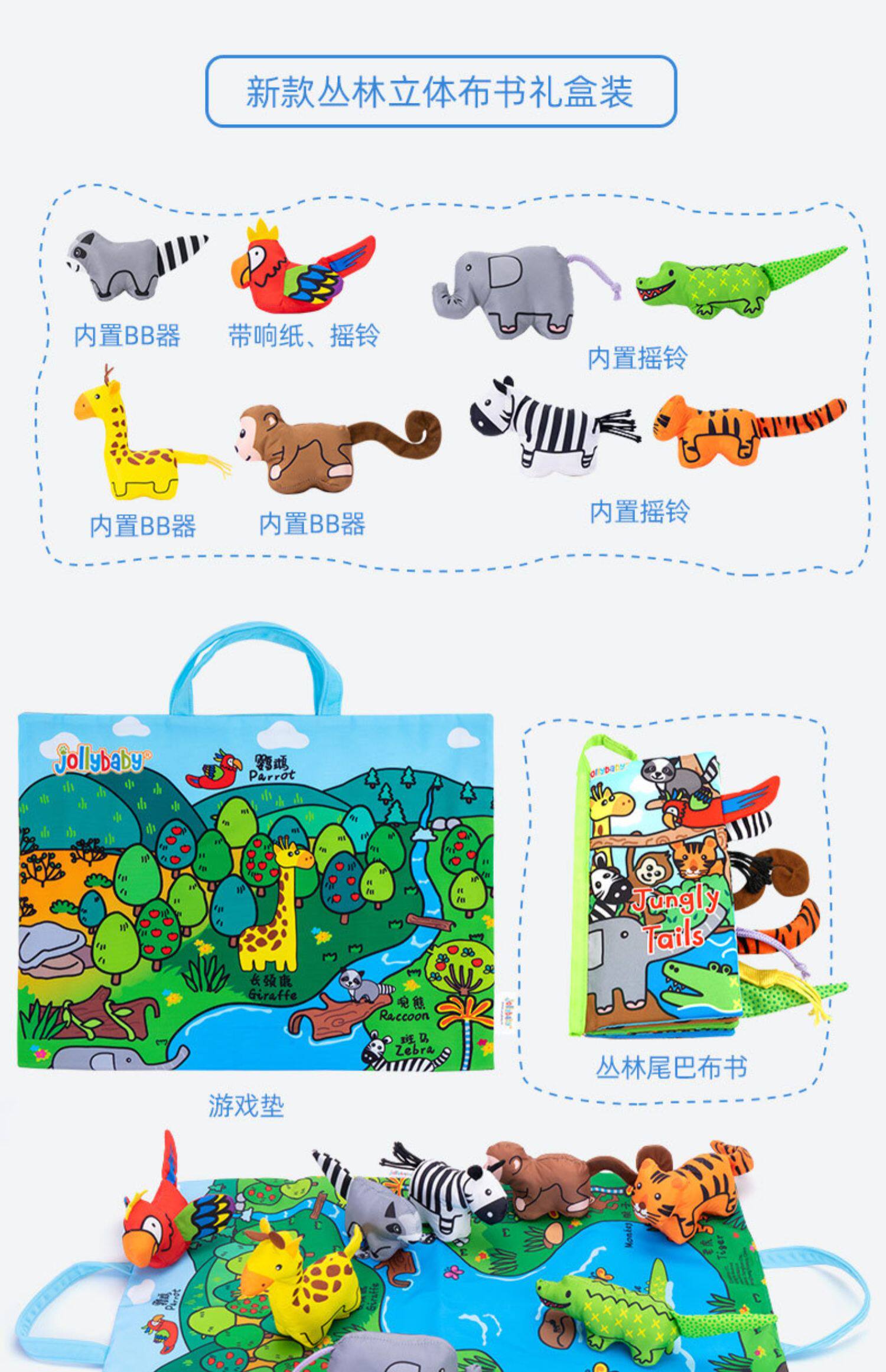Jollybaby Трехмерная книга из ткани, игровой коврик, интерактивная успокаивающая игрушка, кукла, раннее развитие