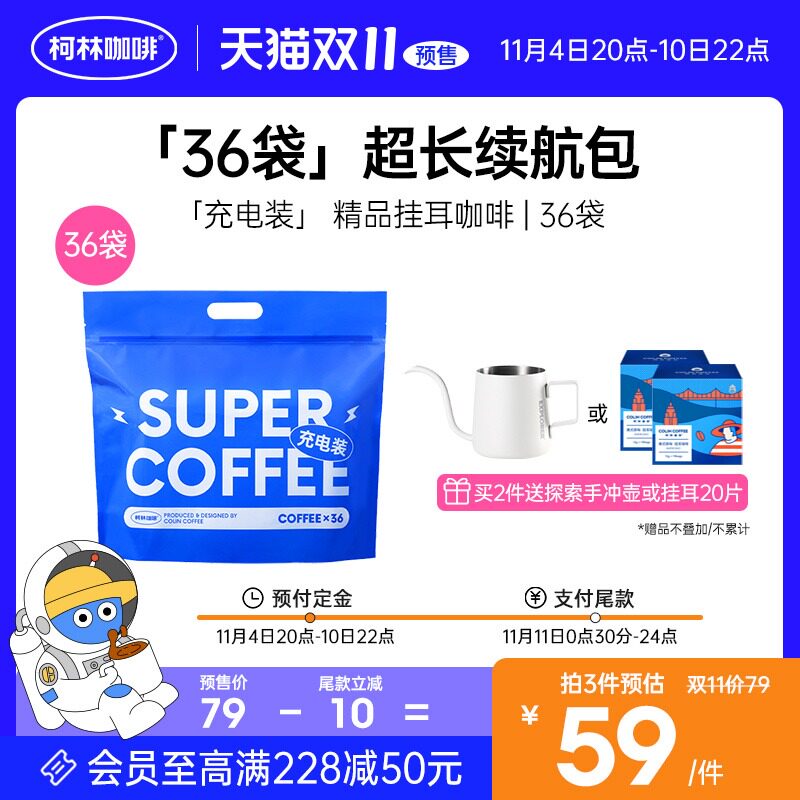 [Double 11 Pre -Sale] Коллин 丨 Зарядка и параллельное уховое уховое кофе теперь изливает черный кофе 10G*36 мешков