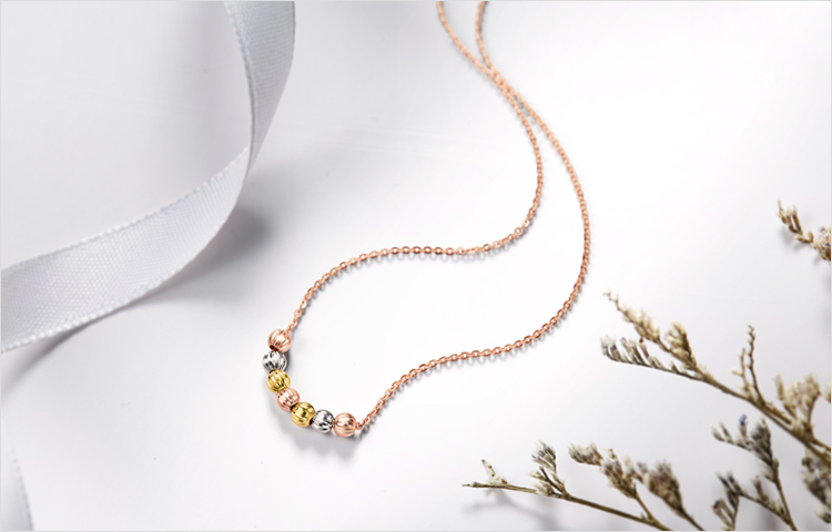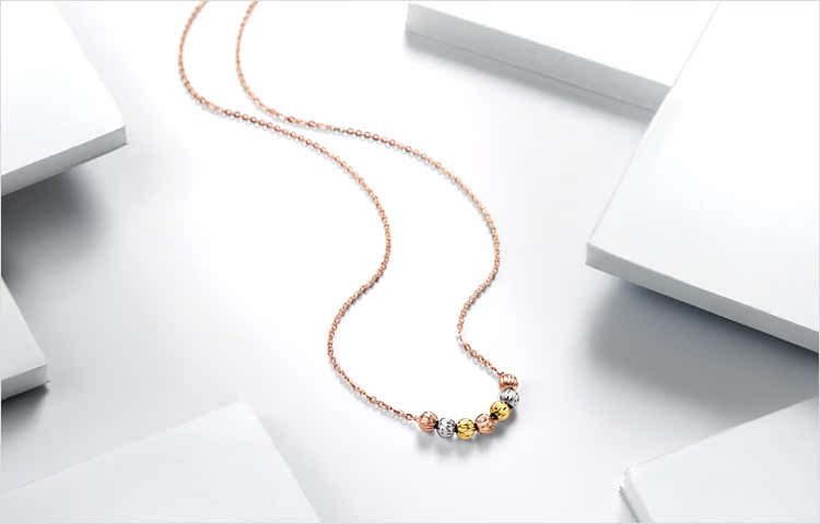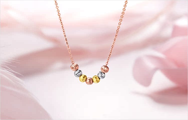 周大福 Бусины, ожерелье, подвеска, три цвета, золото 750 пробы