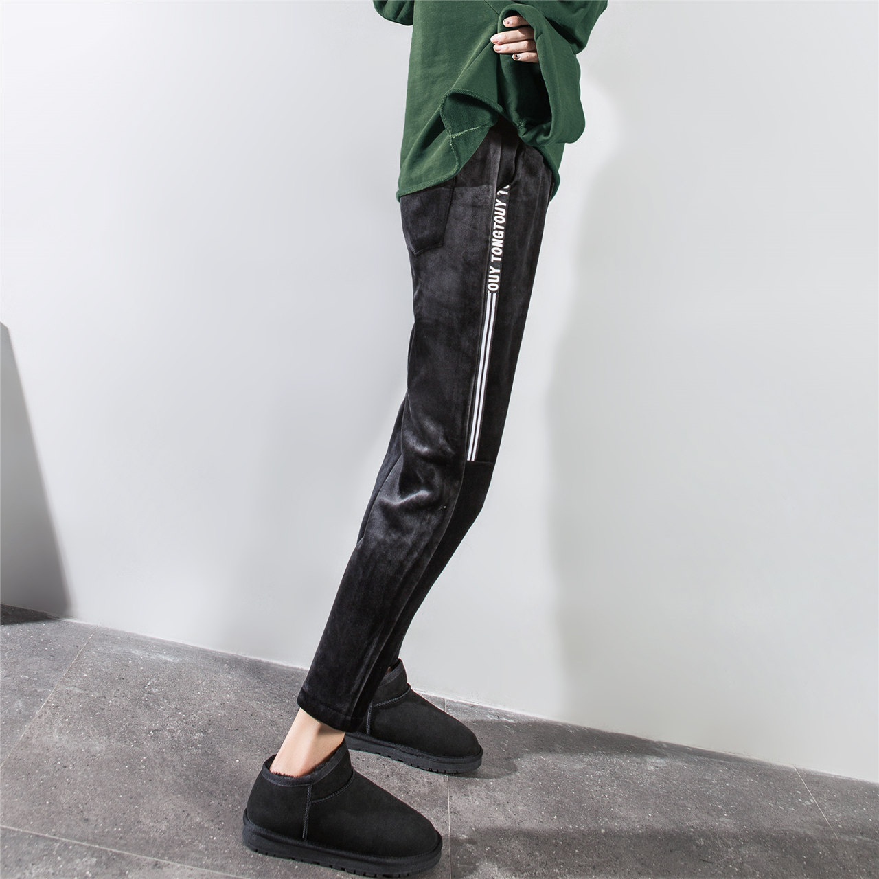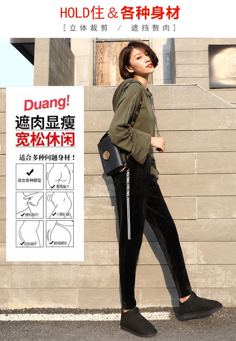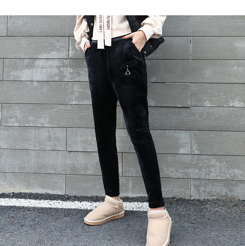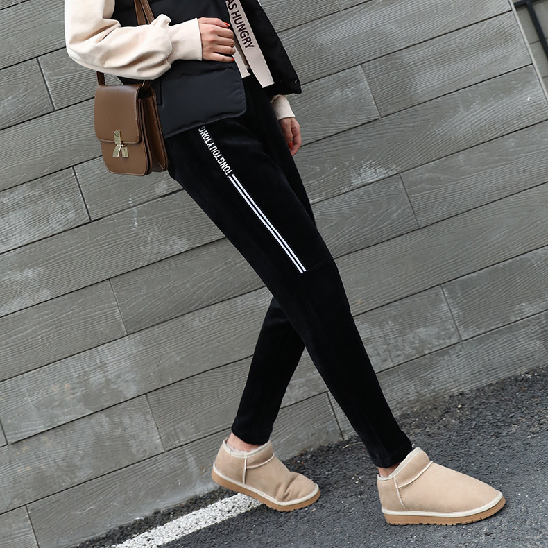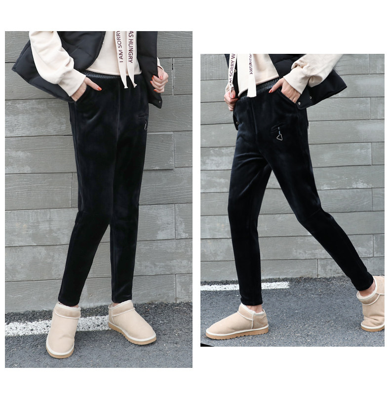 Утепленные бархатные эластичные штаны, в корейском стиле, оверсайз