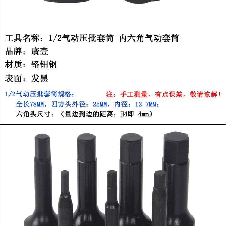 廣壹 Гексагональные внутренние гексагональные внутренние шестиугольные раковины в гексагональной партии шестиугольной головки 1/2 Ветроэлектрический газовый ключ ветрового газа