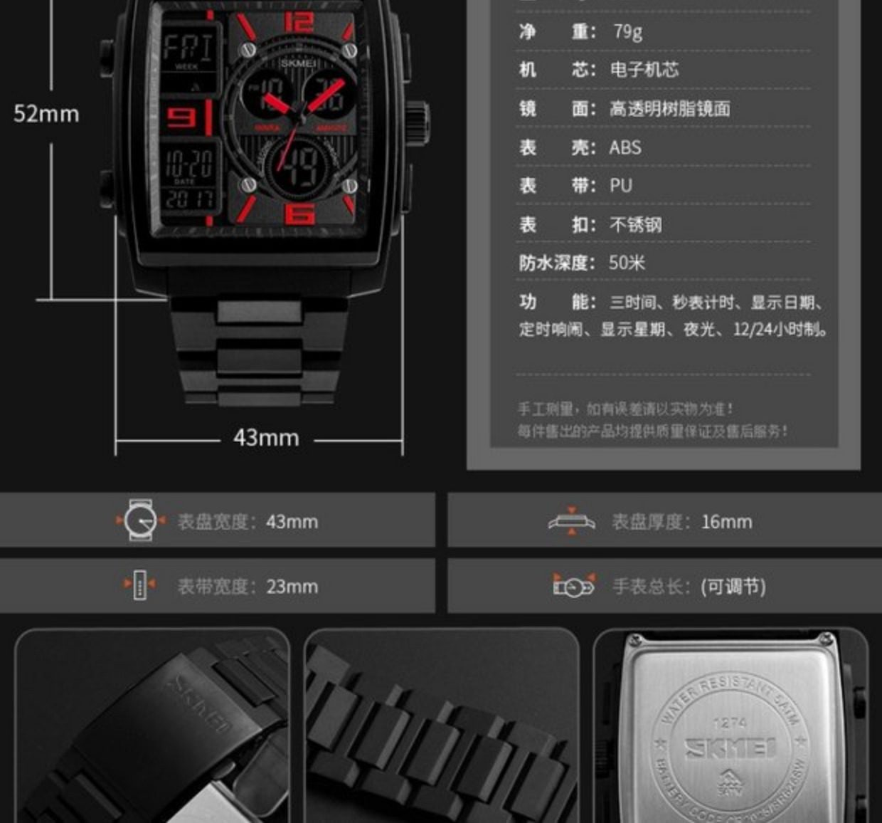 Ретро универсальный модный браслет, трендовые тактические квадратные цифровые часы, европейский стиль