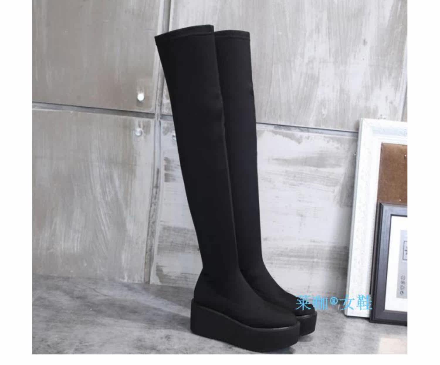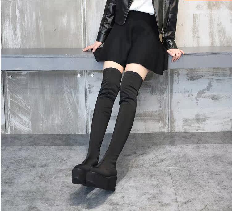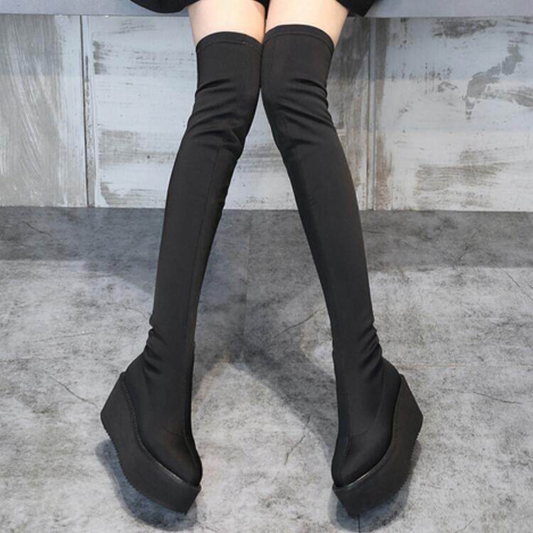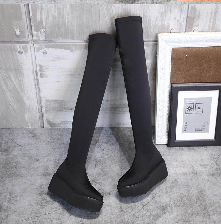 Новинка осеннего стиля 2019, невидимое внутреннее увеличение высоты на 8 см, удобная толстая подошва, водонепроницаемая платформа, женские сапоги выше колена 5557k