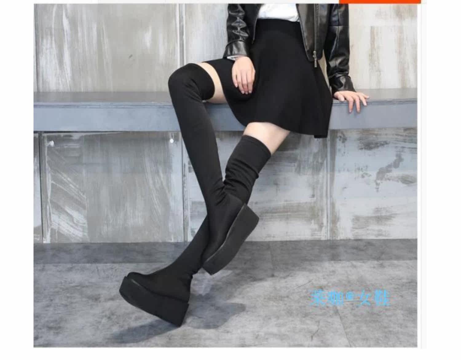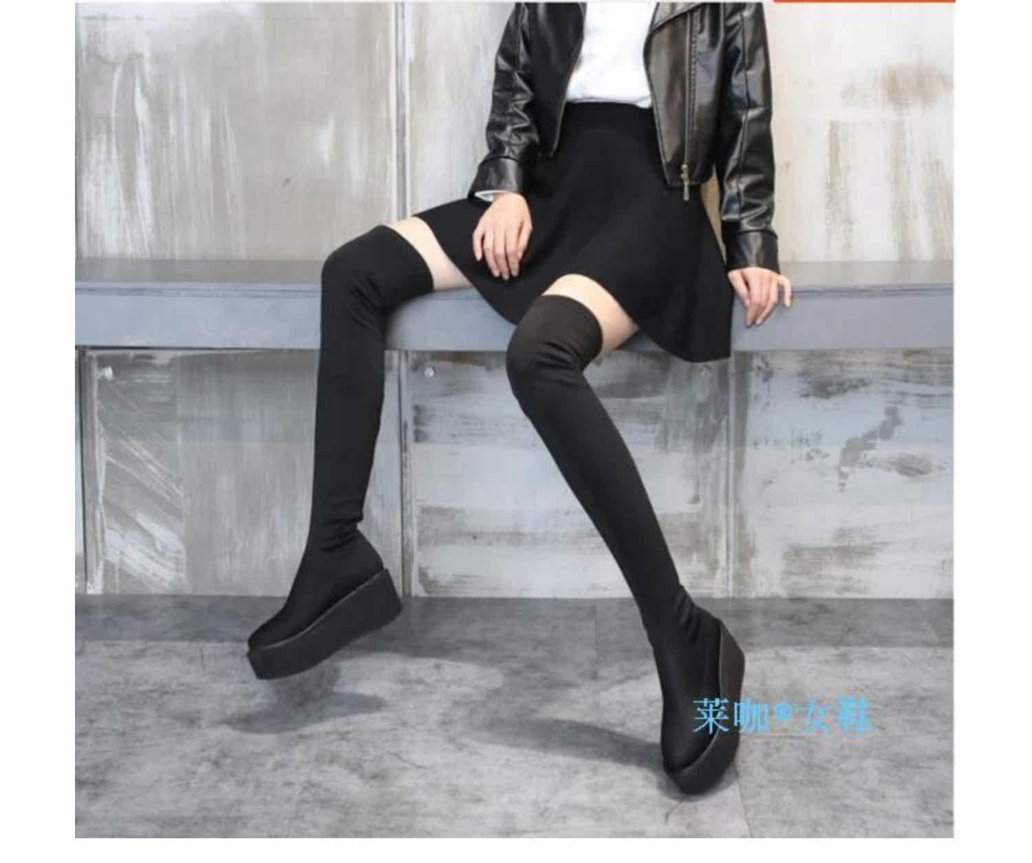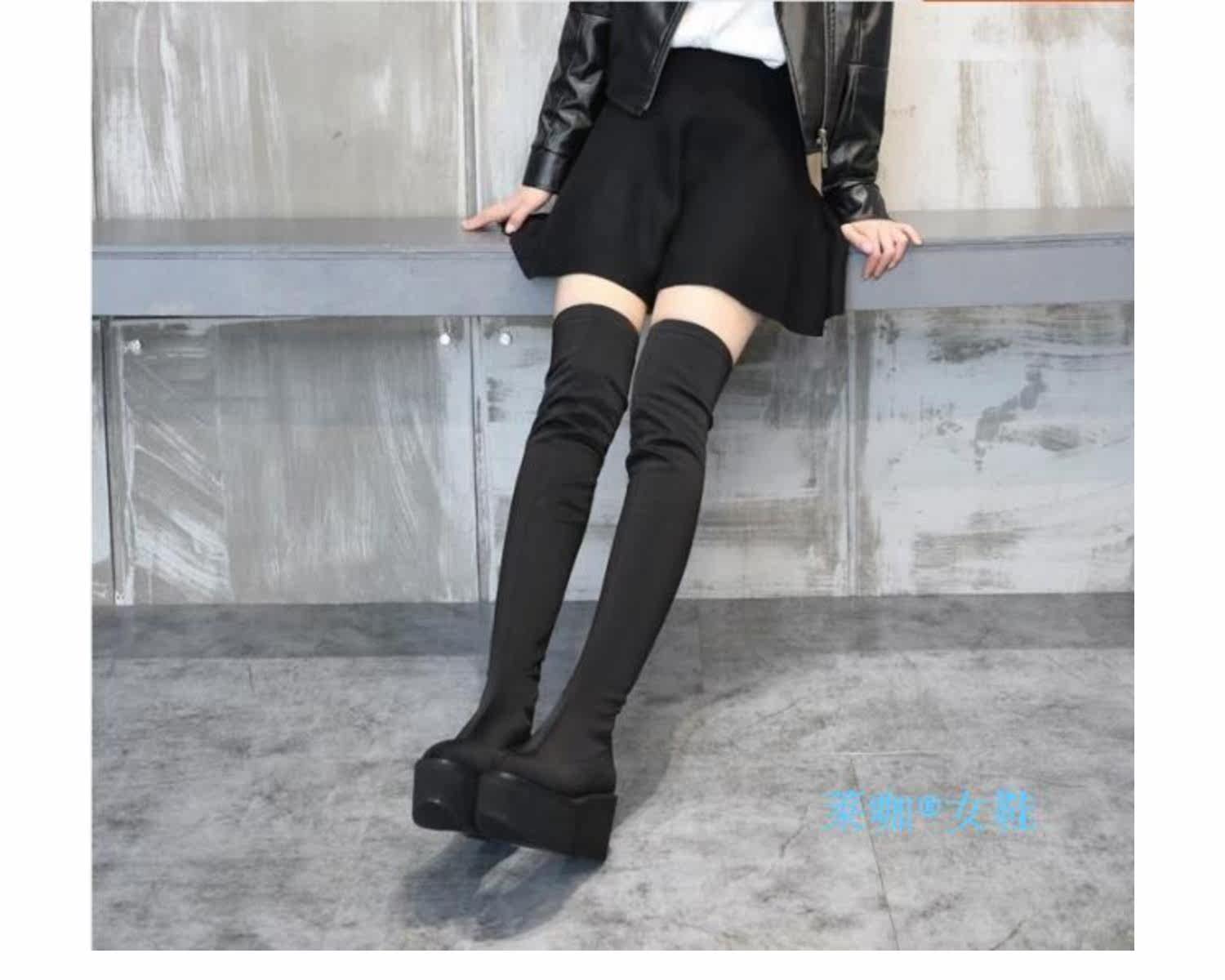 Новинка осеннего стиля 2019, невидимое внутреннее увеличение высоты на 8 см, удобная толстая подошва, водонепроницаемая платформа, женские сапоги выше колена 5557k