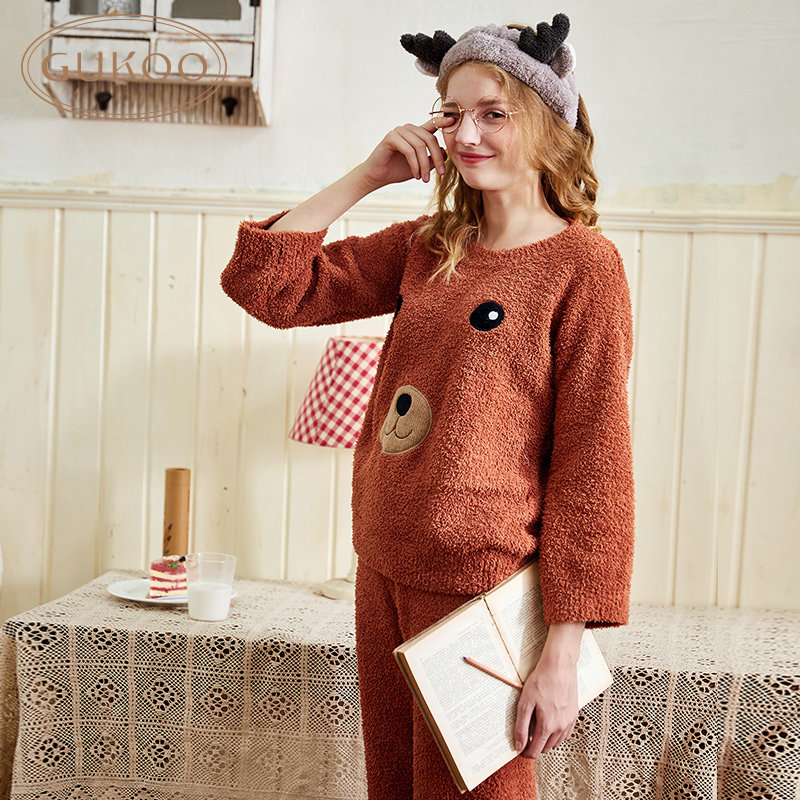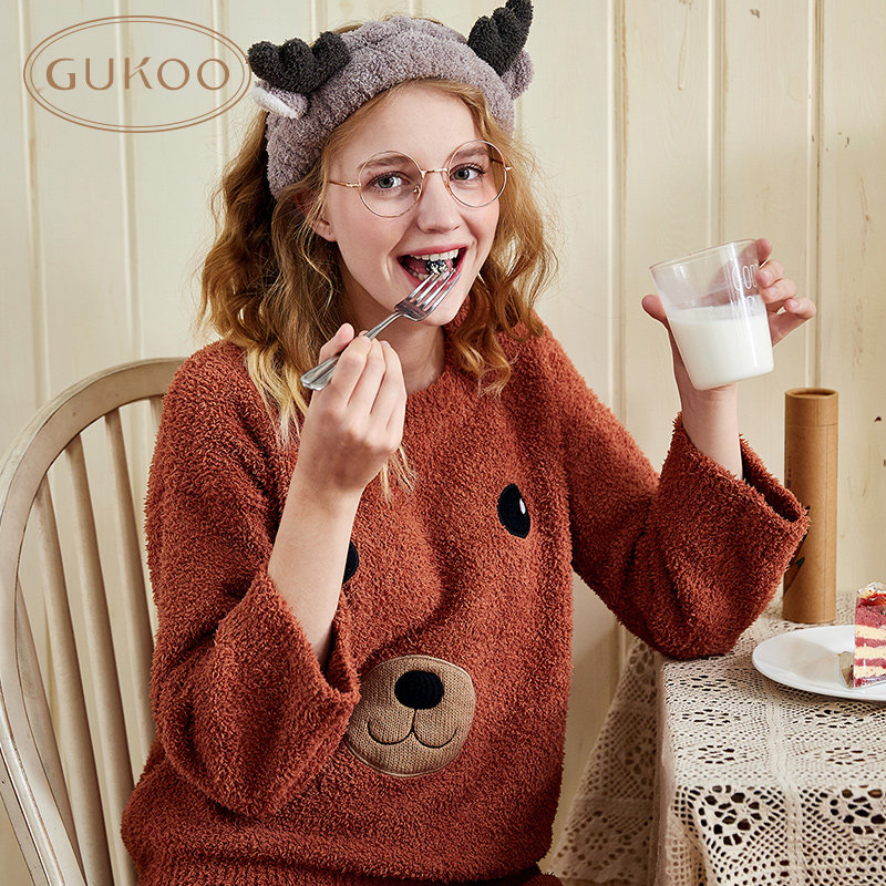 Gukoo/果壳 Зимняя милая пижама, комплект, домашняя одежда, с медвежатами