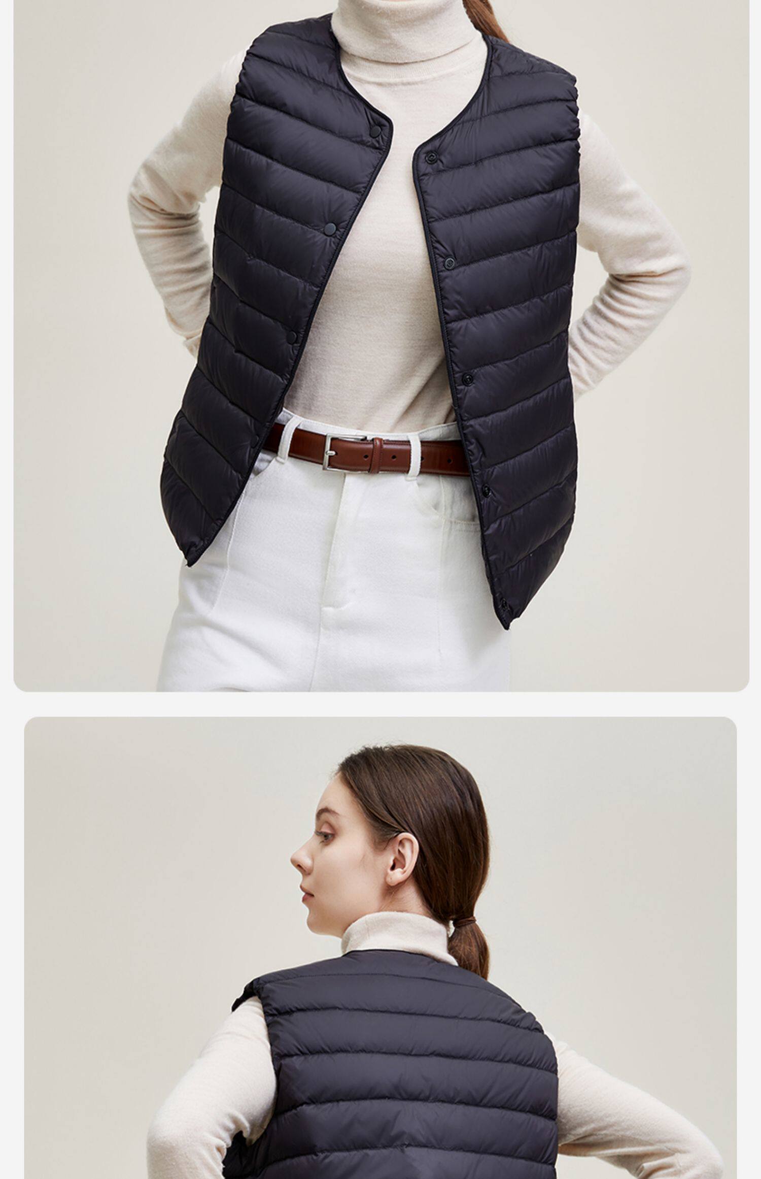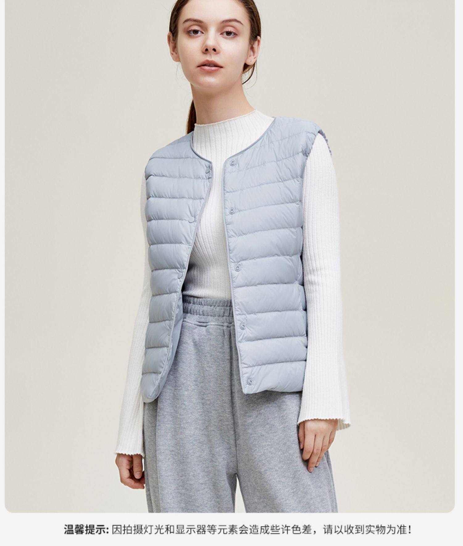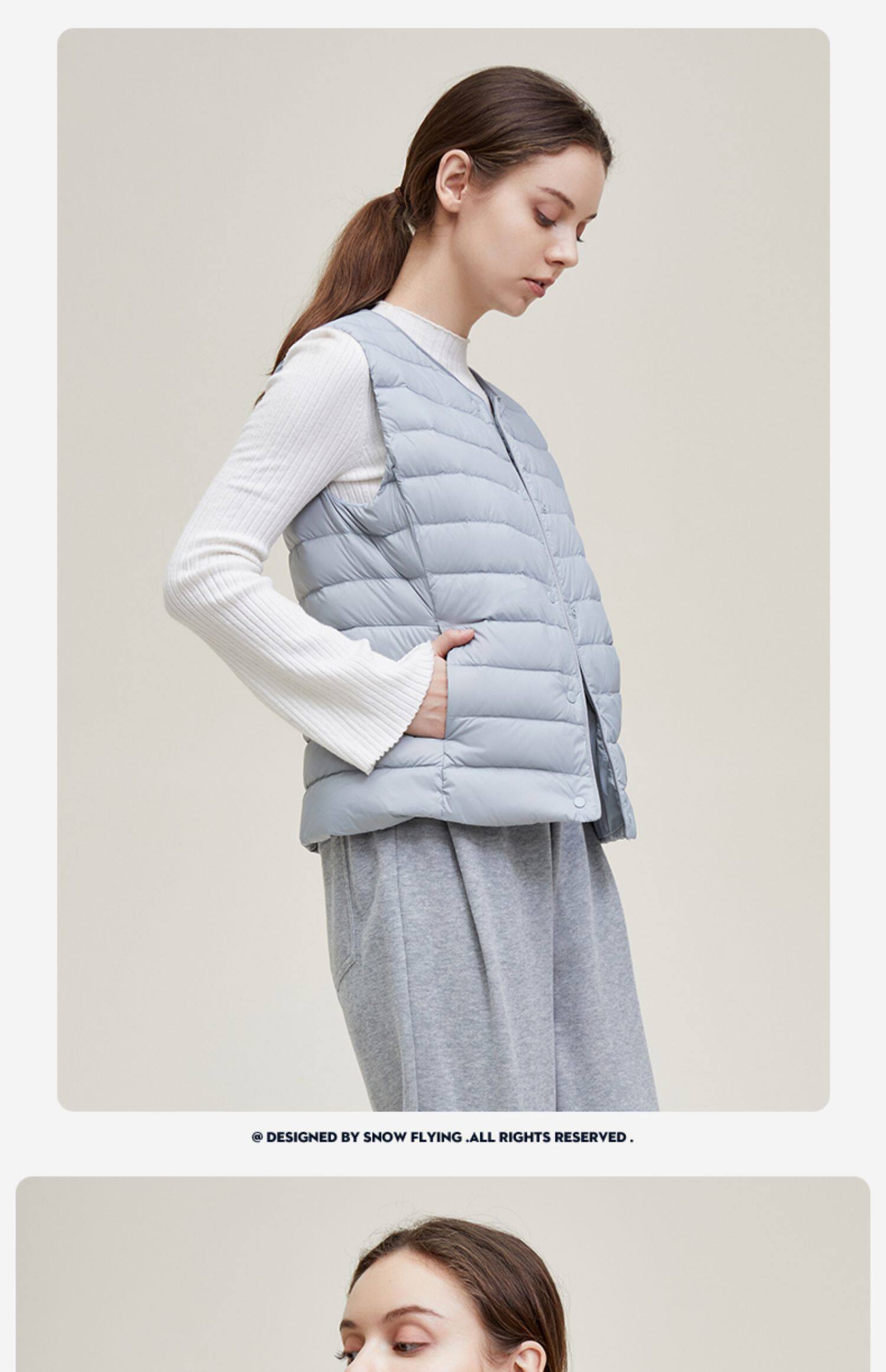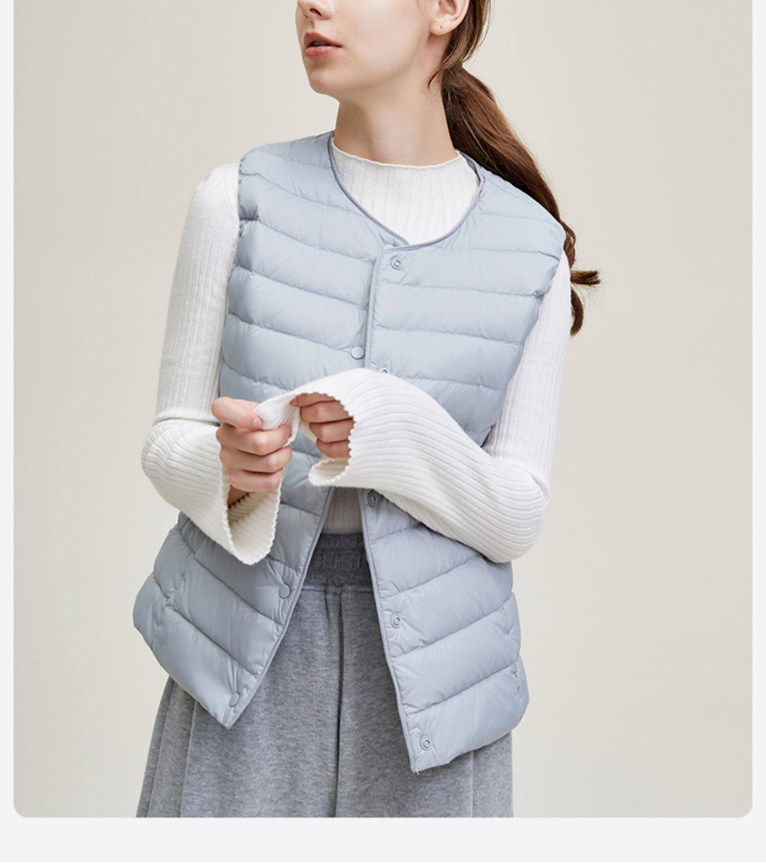 Демисезонный базовый пуховик с круглым воротником, жилет, V-образный вырез