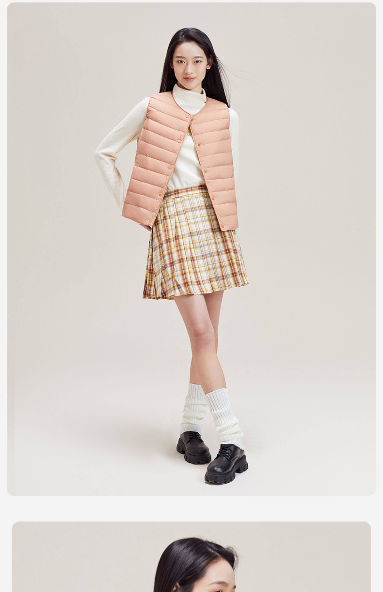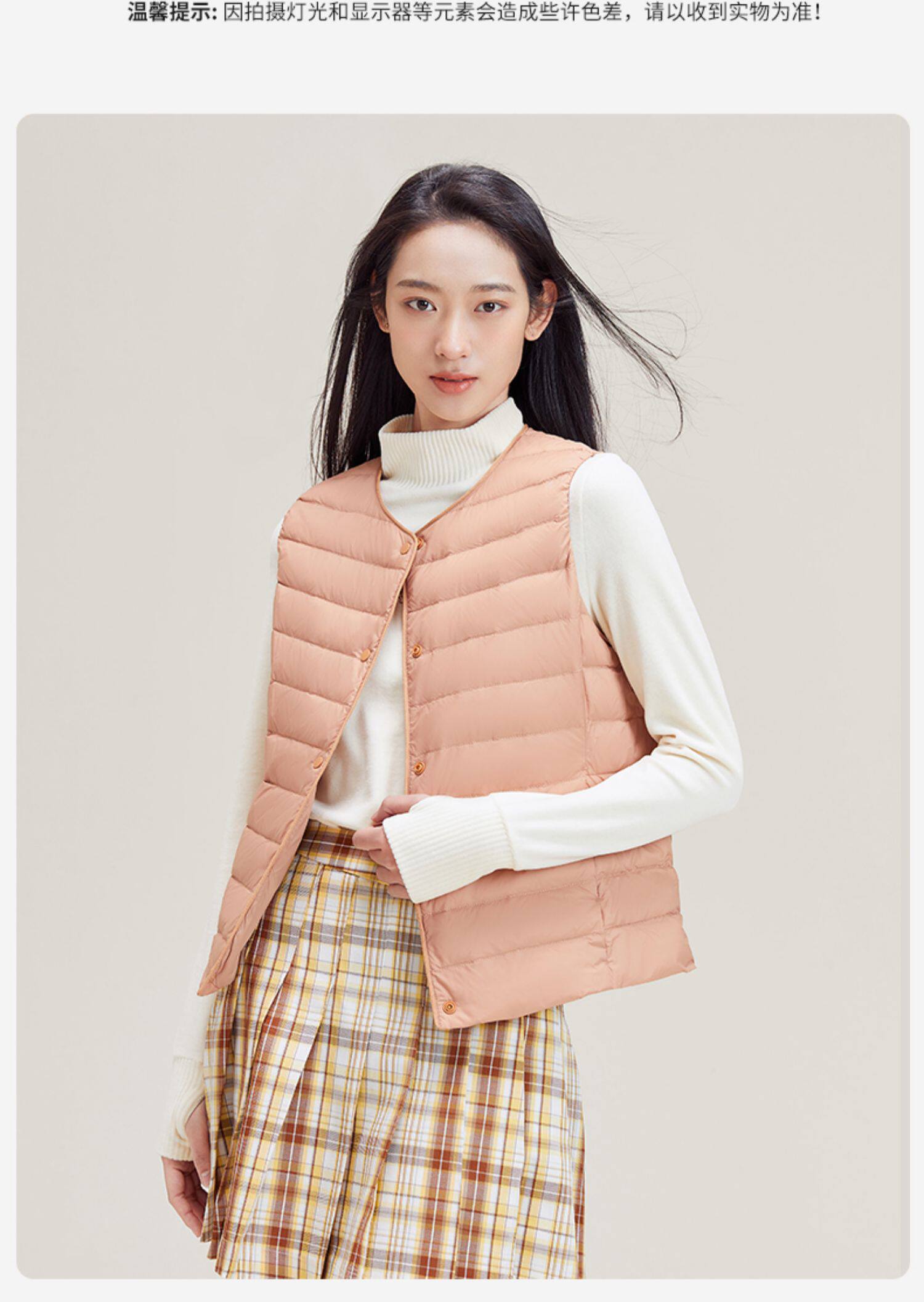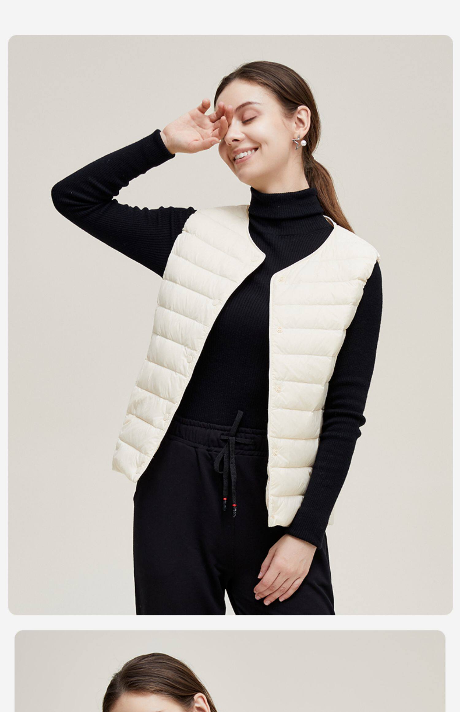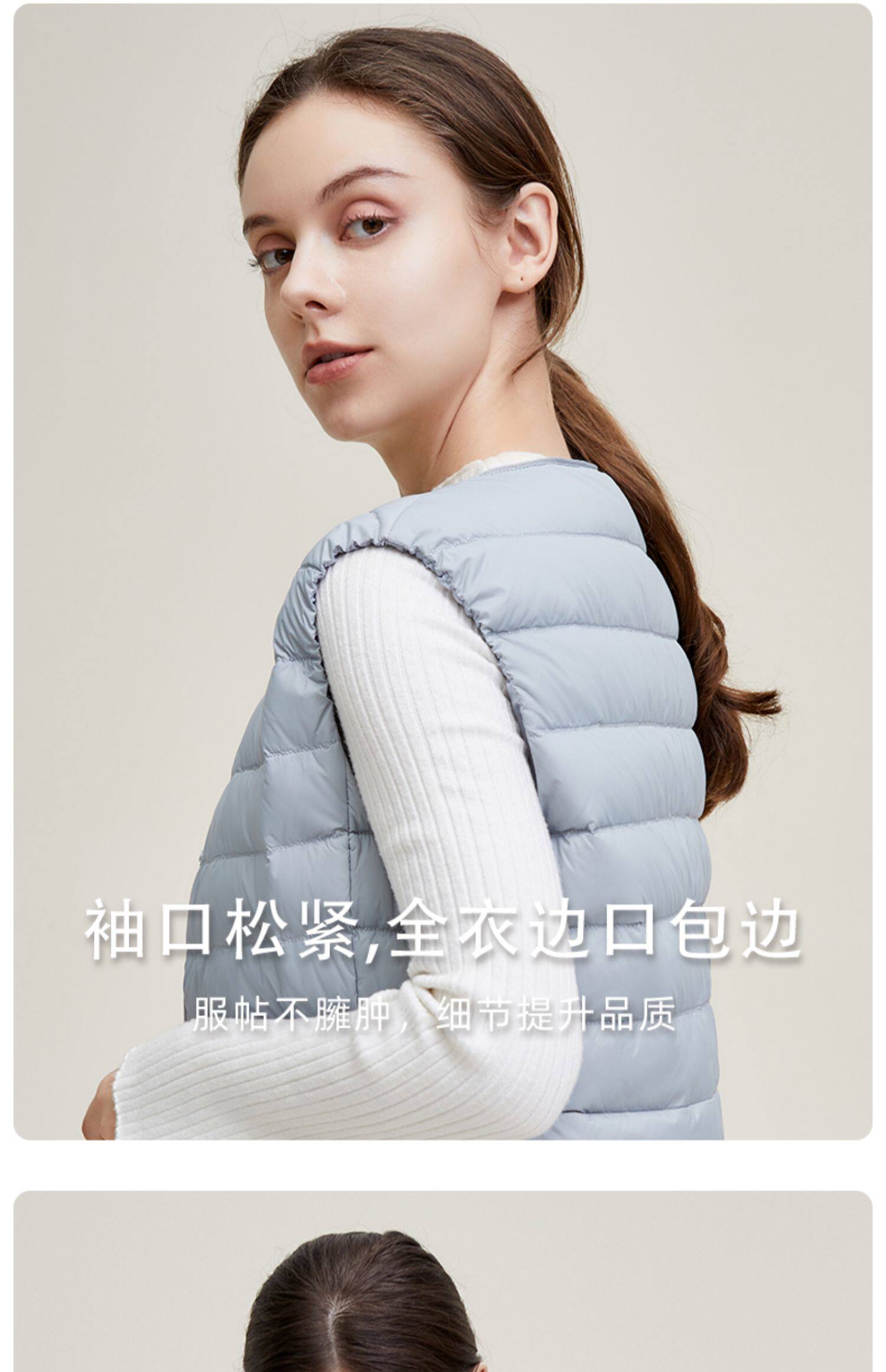 Демисезонный базовый пуховик с круглым воротником, жилет, V-образный вырез