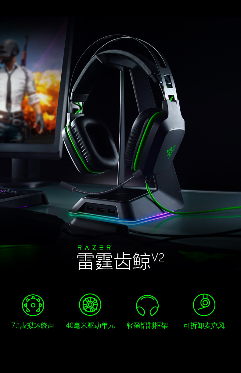 Razer Razer Thunder Whale v2 гарнитура 7.1 Губочка для игры в канале E -Sports USB для еды куриная голова пшеница