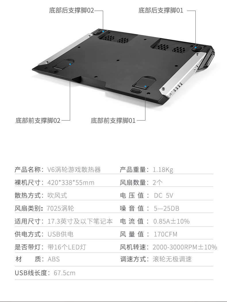 Радиатор, охлаждающий ноутбук, беззвучный универсальный вентилятор, 17 дюймов
