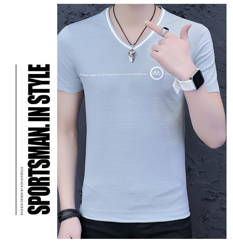 Летняя летняя одежда, трендовая базовая футболка, короткий рукав, в корейском стиле, V-образный вырез