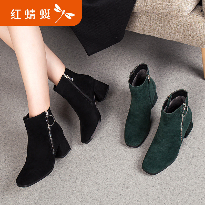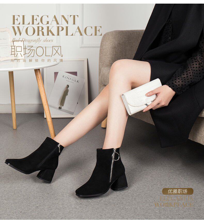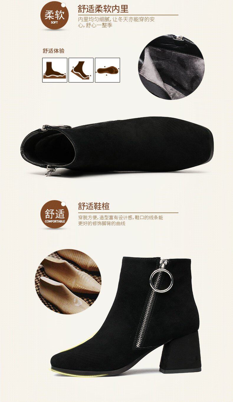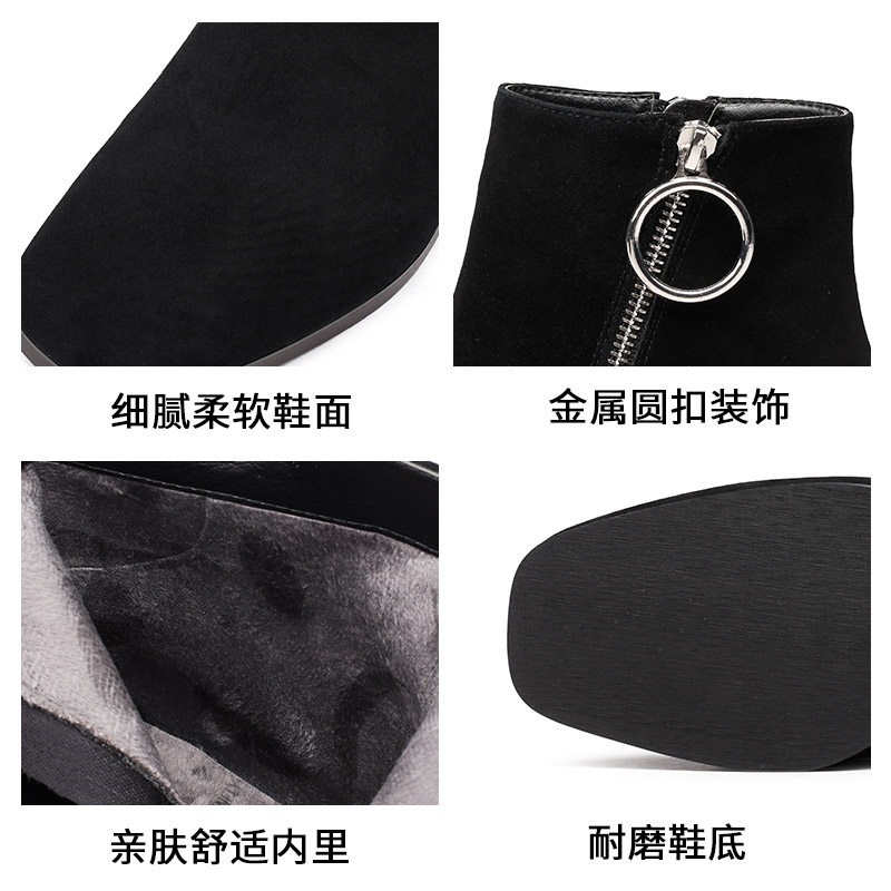 Зимние комфортные короткие сапоги на высоком каблуке, флисовые ботинки, из натуральной кожи