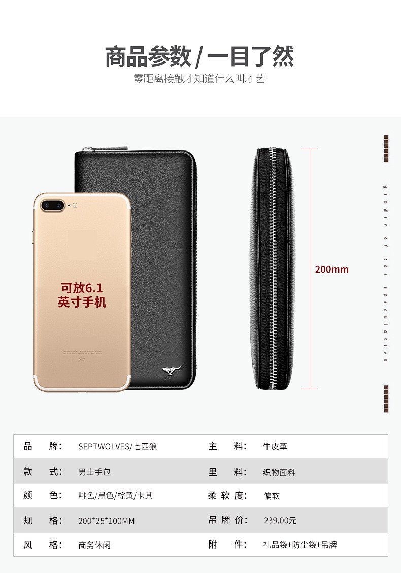 Septwolves, длинный бумажник, цепочка с молнией, сумка с петлей на руку, маленькая сумка клатч, длина макси, подарок на день рождения, простой и элегантный дизайн
